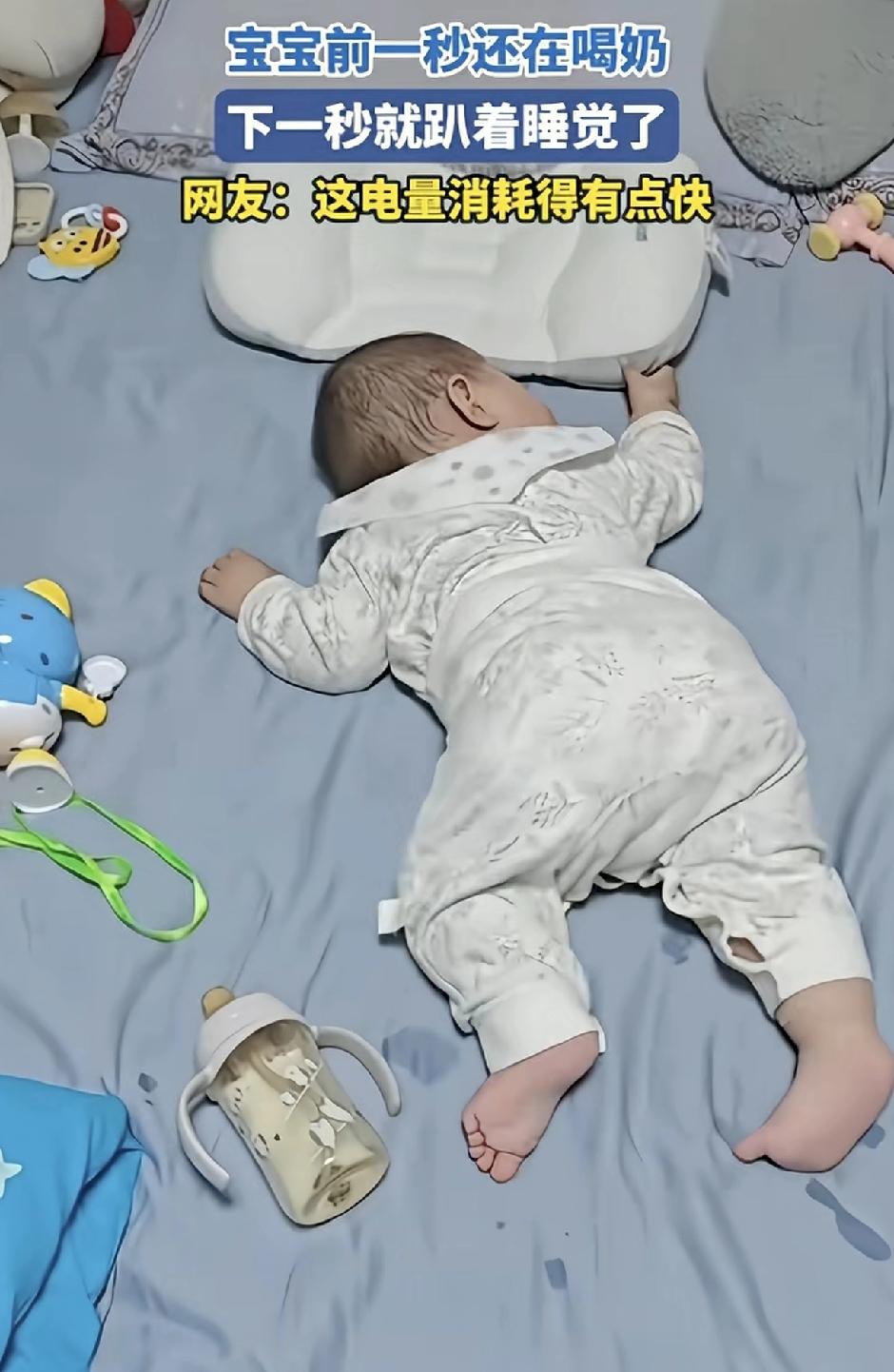 宝宝的最爱,一个是奶瓶,一个是枕头,喝完了奶就去睡觉,爬向枕头的过程中几次努力想头枕上枕头,但是努力几次都失败了,强行关机了,实在不行了,一只小手手搭在枕头上,这算是最后的倔强吧! 看得出来,他对他的枕头充满渴望,但是他没坚持住。 就像电动车,对服务区还是向往的,无奈电力不足[捂脸]
