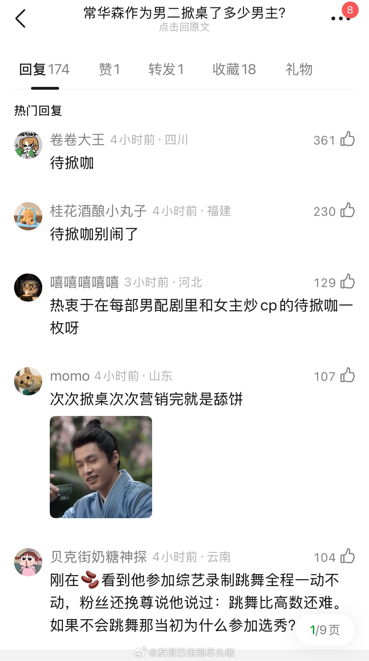 常华森咋惹到瓣人了,突然开始嘲他掀桌咖,说他从刘宇宁掀到成毅再到龚俊