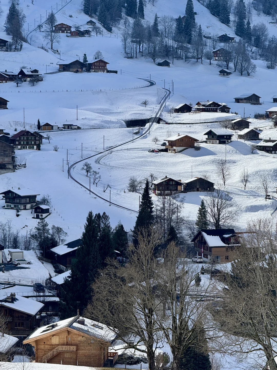 格林德瓦很小,基本上走路能到主要的几个拍照机位,冬天我只去了梦幻山坡,逛了逛小镇,都在一条主干道上