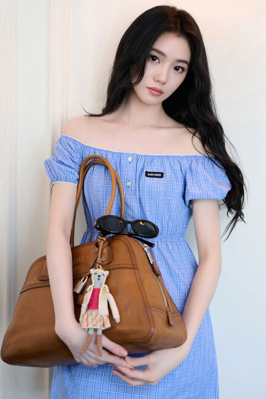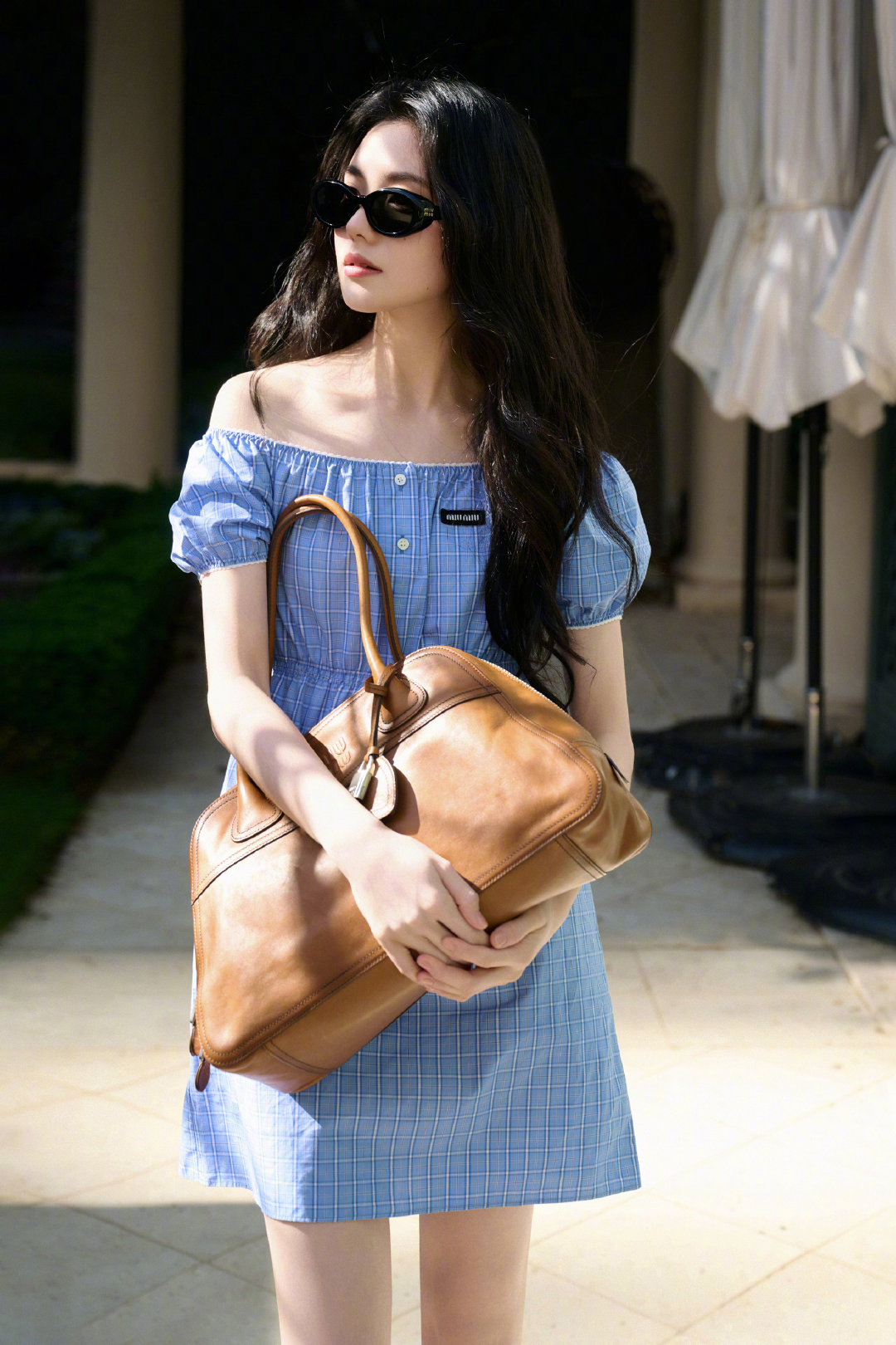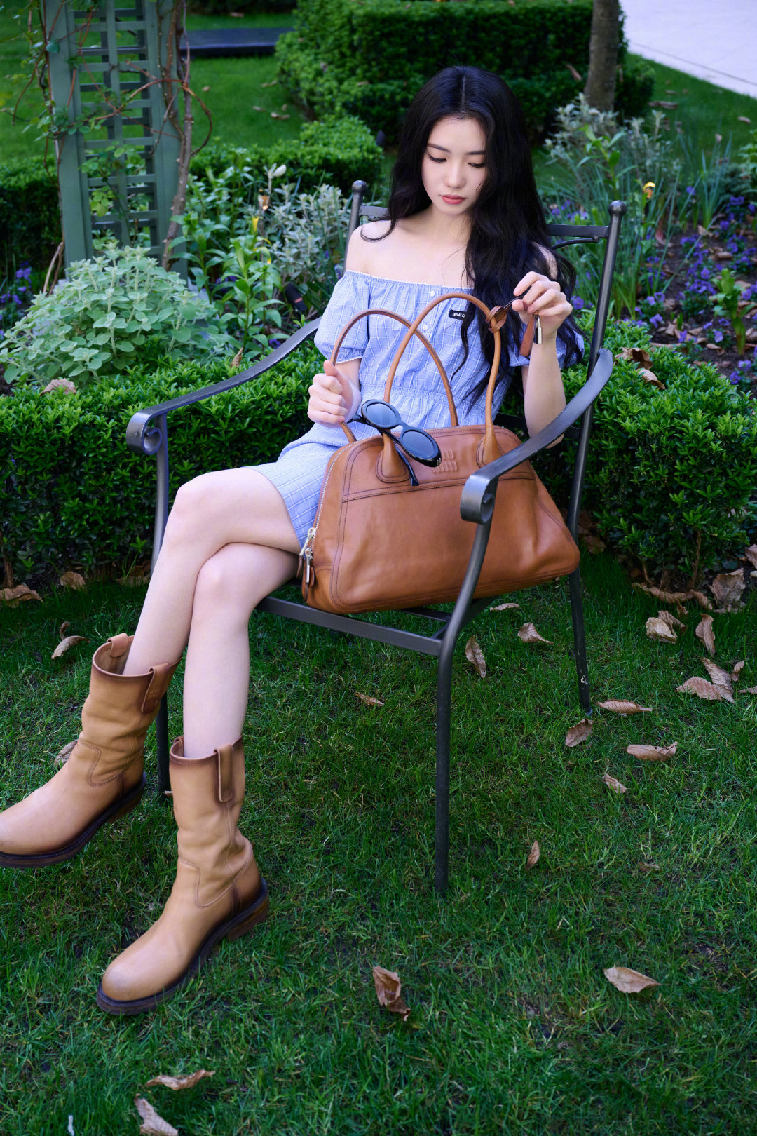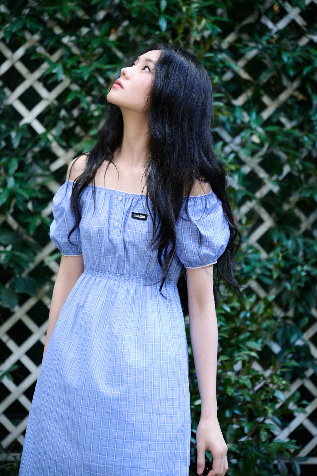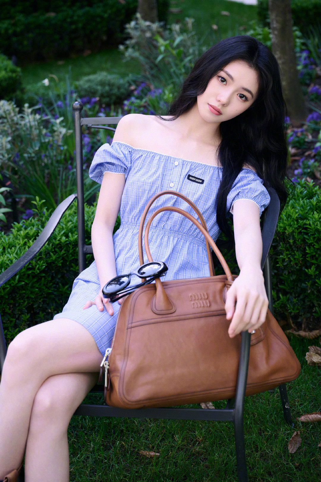 刘浩存 in Miu Miu 💙🌿👜 蓝色连衣裙配Vivant手袋,清新