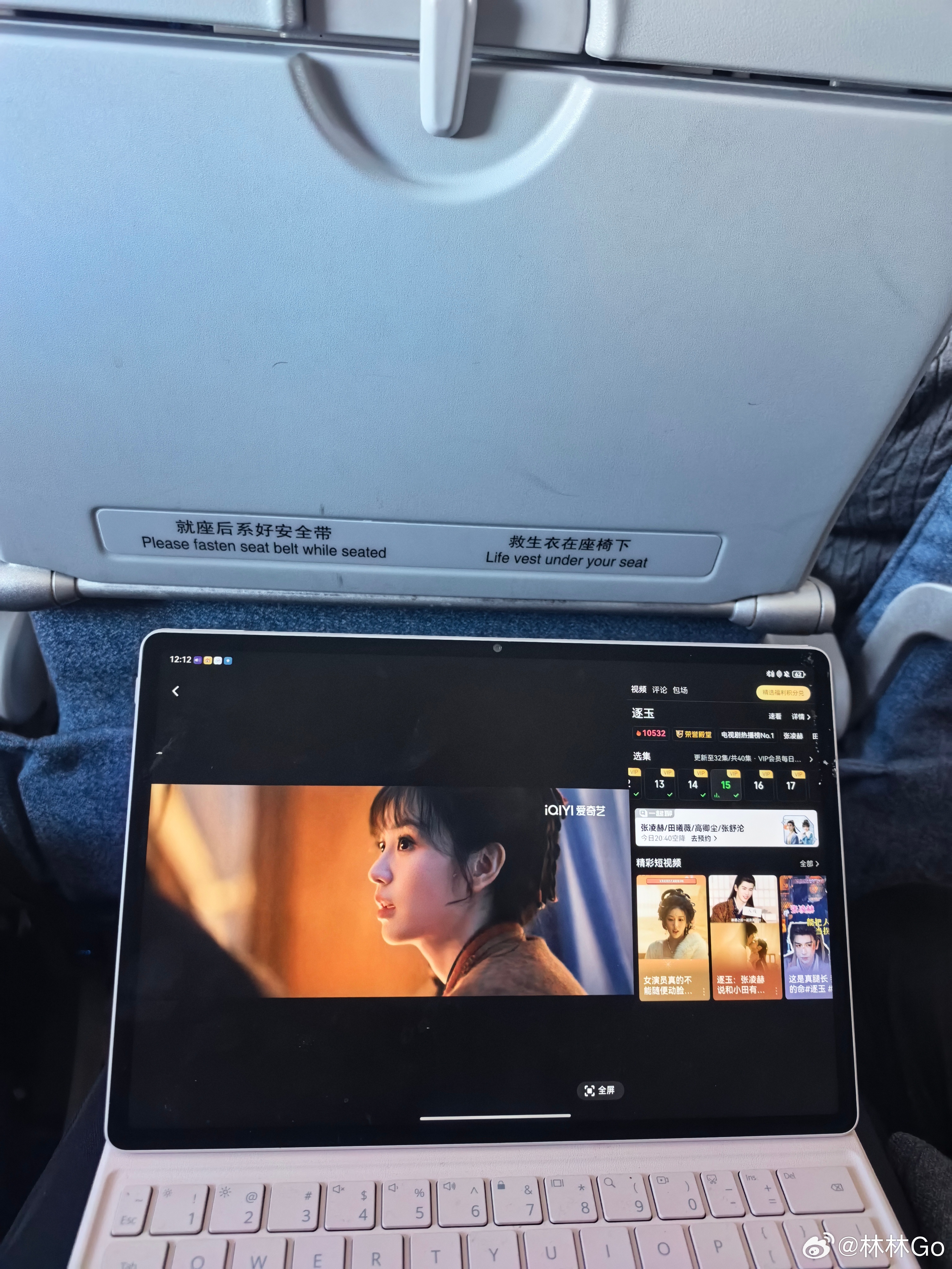 今天上飞机的时候,我把pad拿出来,想要追剧。一抬头,发现我前排的小姑娘也在看逐玉。