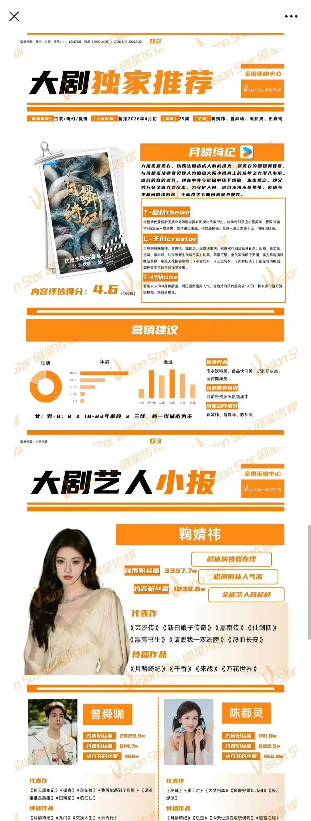 鞠婧祎、曾舜晞、陈都灵、田嘉瑞《月鳞绮纪》招商了