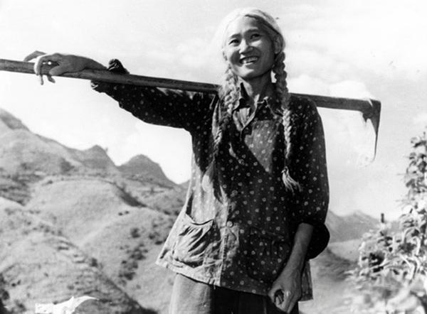 这张照片里的白发姑娘,就是现实版“白毛女”——罗昌秀,川剧《宜宾白毛女》的原型。 1939年,16岁的罗昌秀因不堪地主罗锡联及其妻陶天珍的迫害(被诬陷偷米、惨遭毒打),被迫逃进川滇交界的断头山深山老林,开始了长达17年的“野人”生活,住山洞、吃野果、喝泉水,用树叶遮体,长期缺盐让她的头发全白。 1956年,在政府和乡亲的帮助下,33岁的罗昌秀终于被救下山,政府为她治病、盖房、分田,让她重新融入社会。1958年,她与生产队队长文树云结婚,1959年生下儿子文关怀,后来又有了女儿。这张照片正是她1964年的劳动留影:扛着锄头,笑容灿烂,完全是一位勤劳的新中国农民。