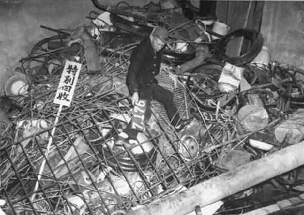照片里,小山一样的破铜烂铁堆上插着“特别回收”的木牌,有人正蹲在废料里分拣——这些从民间搜刮来的金属,要被送进军工厂熔成武器。 1944-1945年,太平洋战场节节败退的日本,资源彻底枯竭,海外航线被美军掐断,军工生产难以为继。政府发起“金属特别回收运动”,从家家户户到城市公共设施,连路灯、消防栓、寺庙铜钟、甚至妇女的发簪、孩子的玩具都被强行收缴,统统回炉造子弹、造炮弹。