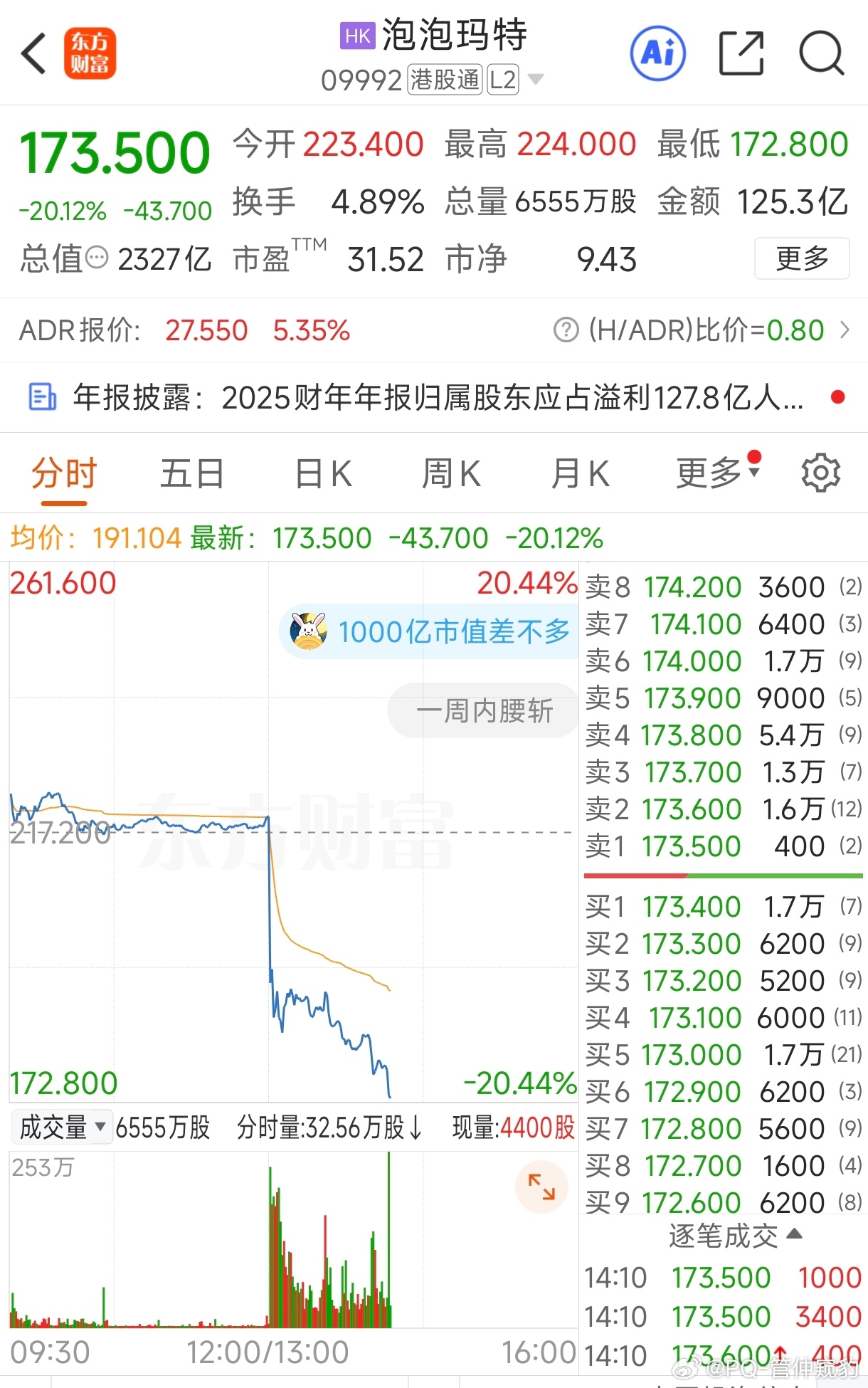 毛利率高达72.1%净利润率高达恐怖的34.4%即便如此,单一IP盈利风险过高,所以股价直线跳水泡泡玛特直线跳水