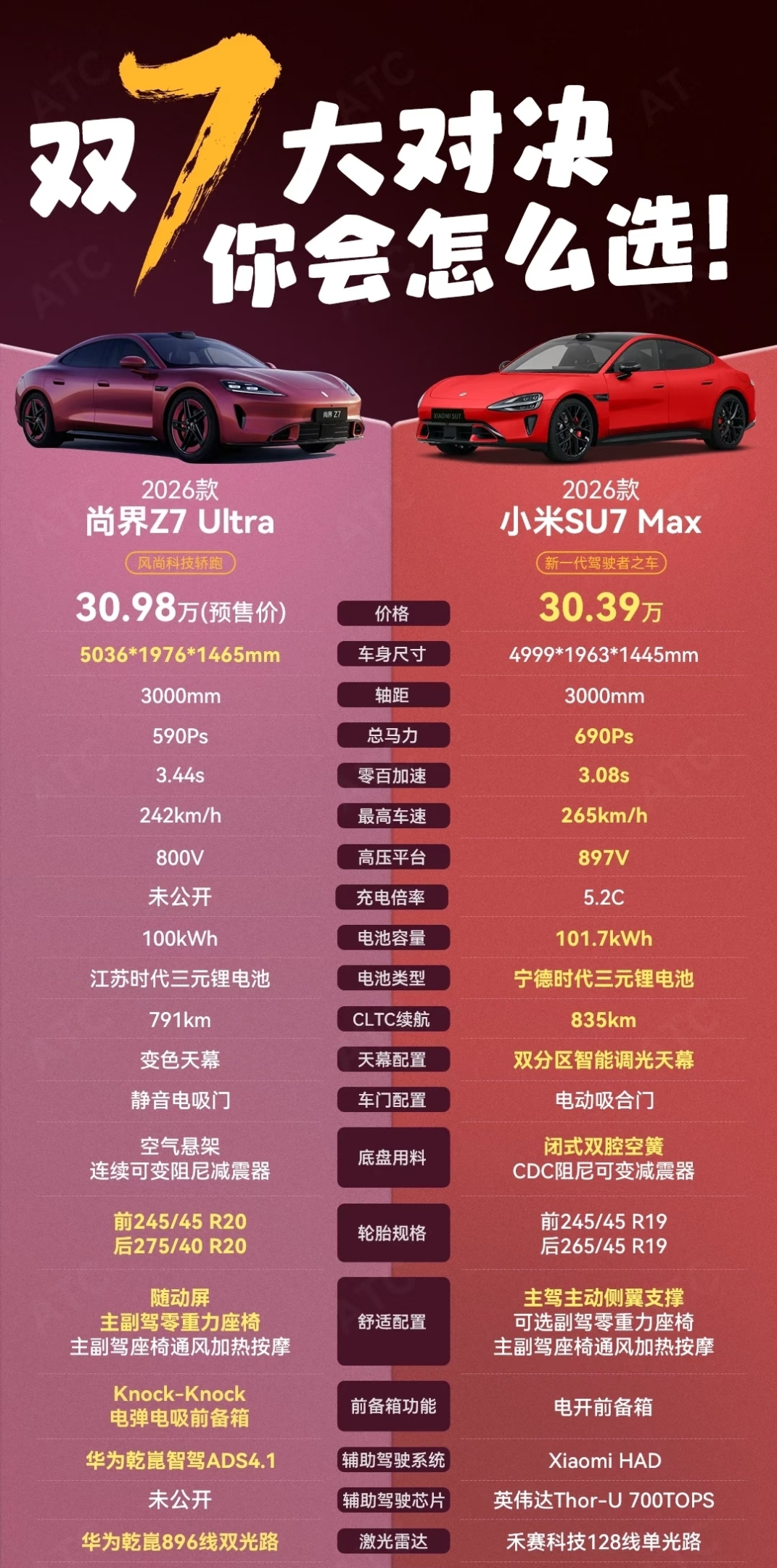 说句大实话,这两台车不存在谁吊打谁,全看你更吃哪一套。追求速度、想要油门一踩就上头的感觉,SU7 Max闭眼入没毛病。但如果你大部分时间都是家用代步,图的是省心、坐着舒服、开着不累,那Z7 Ultra的配置,几乎是贴着你的日常需求去打的。30万买车,说到底就是买个“顺手”,参数再漂亮,不如正好对上你自己的用车节奏来得实在。