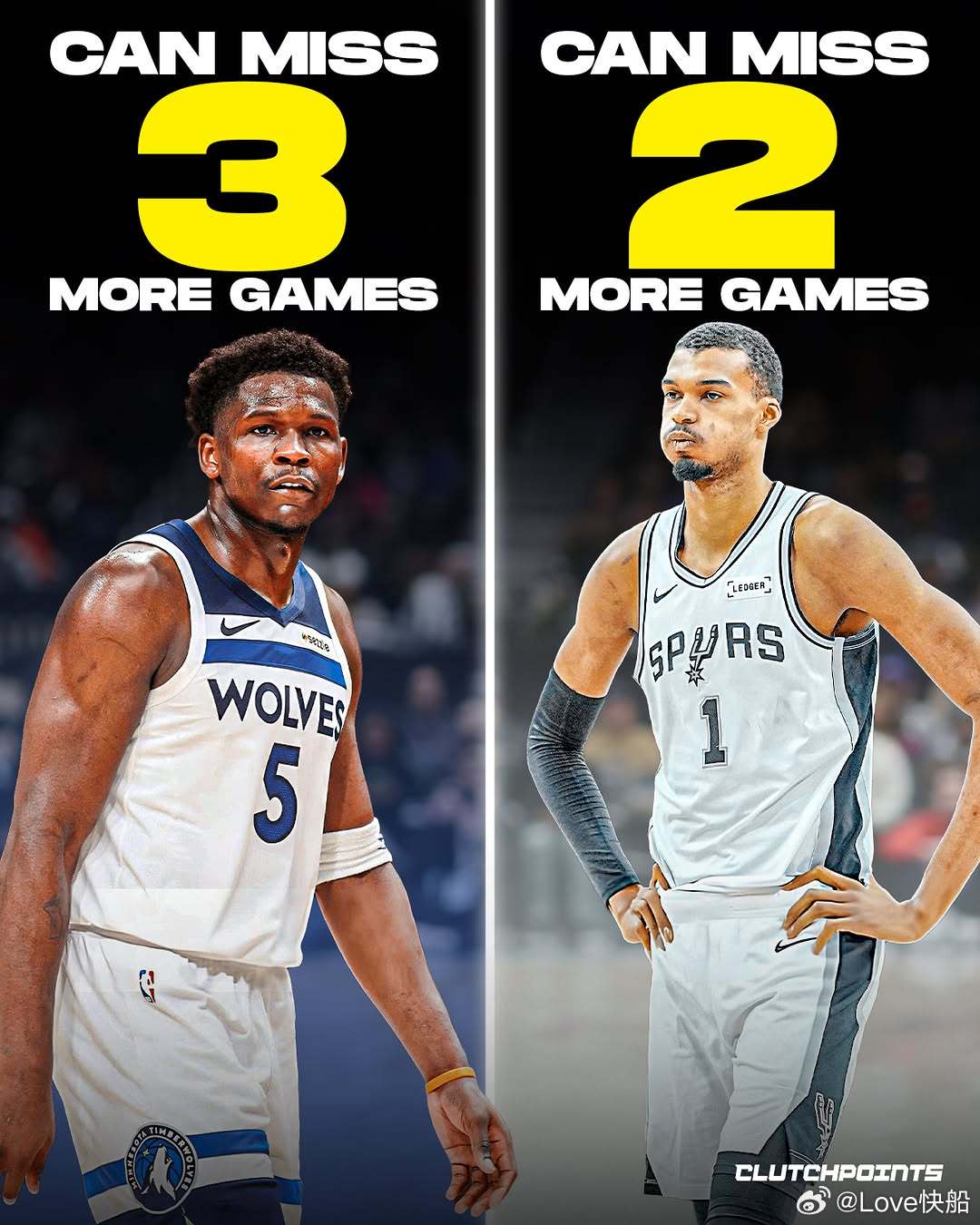 不过,小卡,约基奇,爱德华兹,文班等人的缺席额度都不太多了!