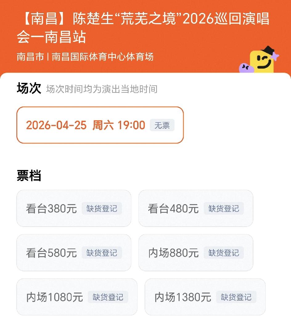 陈楚生荒芜之境演唱会南昌站竟然也售罄了,大体育场啊,几万张票,亏着我吸取了上海站