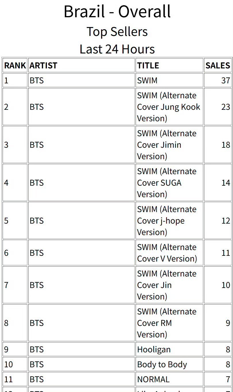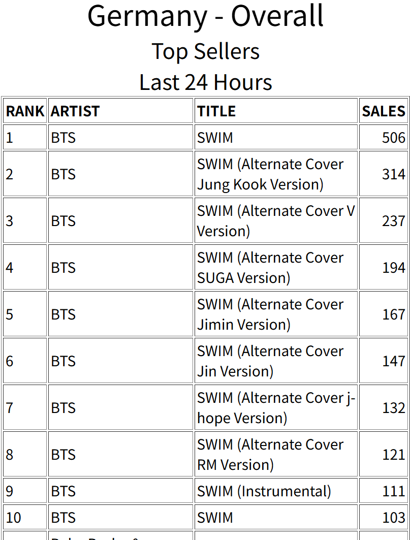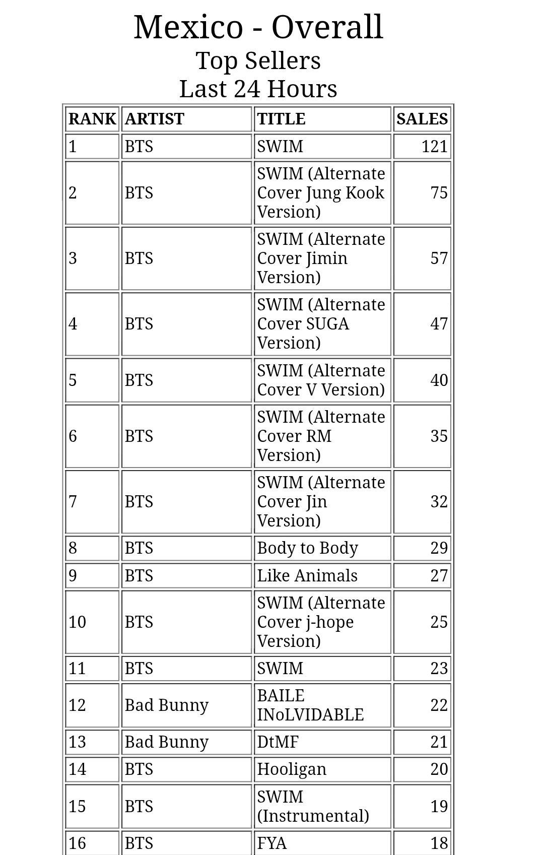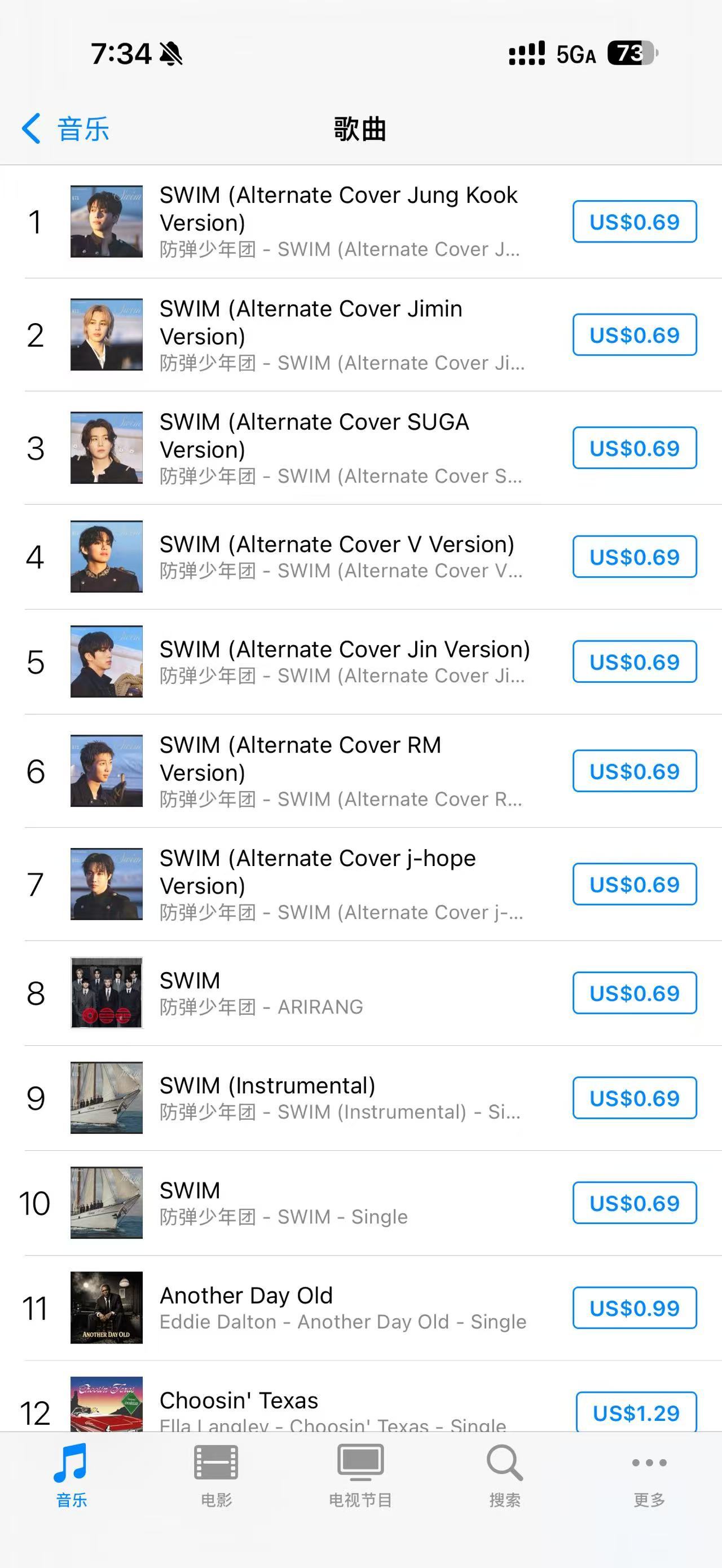 田柾国《SWIM》单封音源iTunes美区已登顶一位七小时,加拿大登顶一位,北美音乐市场包揽第一。队内单人顺位【最高】八大音乐市场登顶2个且全部进入前十,美日英法巴加墨均为队内最高排名🇺🇸美国 🥇🇯🇵日本 8🇬🇧英国 2🇩🇪德国 2🇫🇷法国 2🇧🇷巴西 2🇨🇦加拿大 🥇🇲🇽墨西哥 2