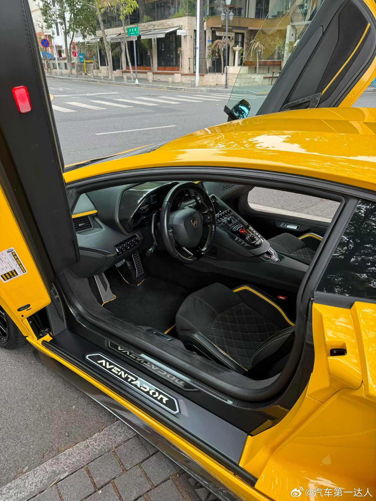 兰博基尼,Aventador S,LP740-4 Coupe、牛家经典代表色,四层漆珍珠黄,内饰黑反绒皮点缀黄色元素,顶配,碳纤维选配全勾