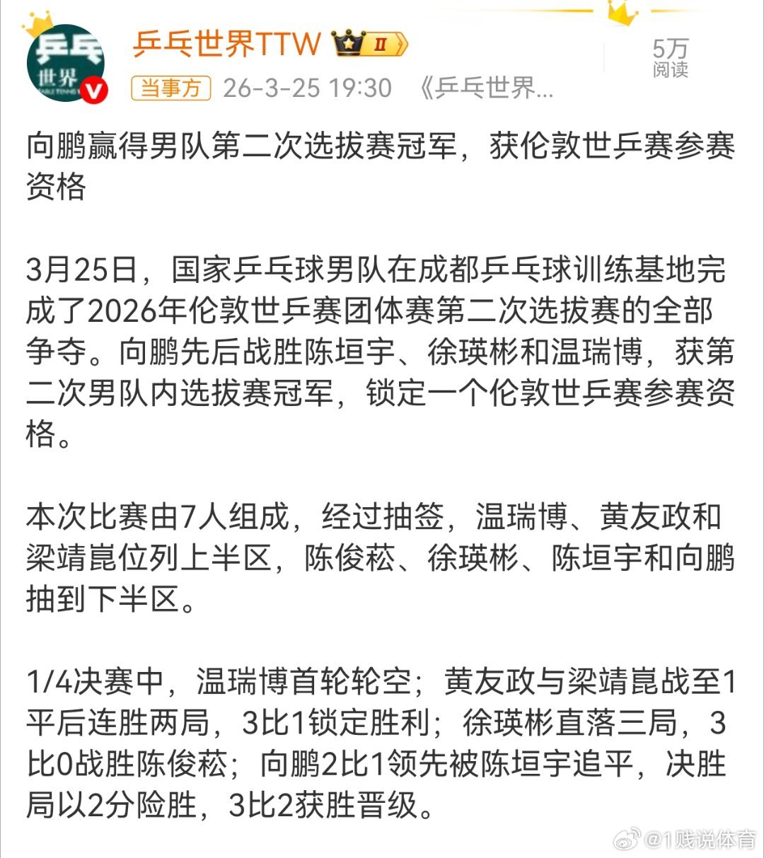 目前来说樊振东到底参不参加,他的名额打算咋办,在澳门世界杯开打之前伦敦世乒赛参赛名额还能不能确定?向鹏战胜陈垣宇徐瑛彬温瑞博国际乒联