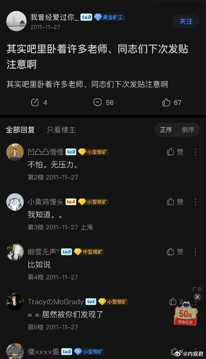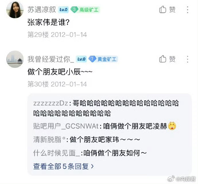 张凌赫中学时期贴吧发言网友考古张凌赫中学时期的贴吧,这简直太萌了“做个朋友吧~~~”“啊别封原谅我第一次”“你是那个”还有小核桃在下面回复,更萌了考古张凌赫贴吧