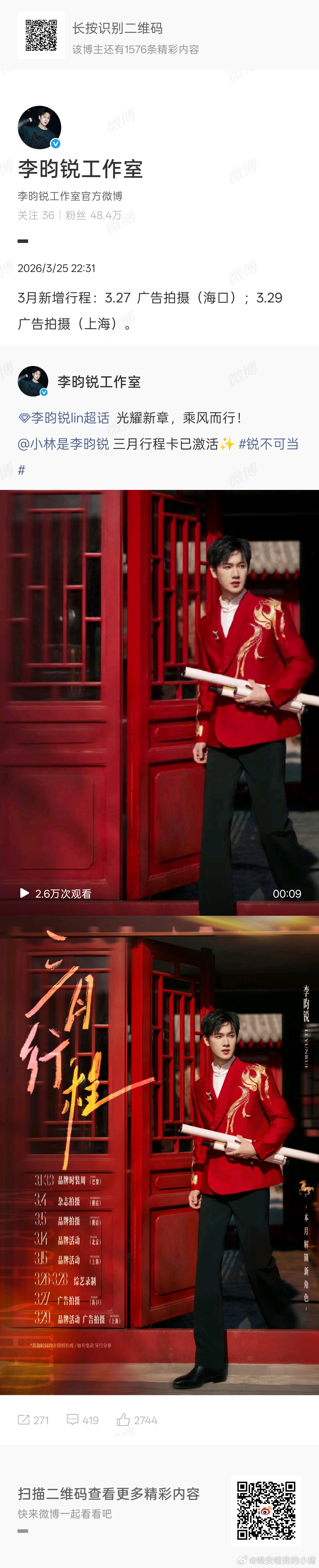 李昀锐三月行程新增,本月又是满满当当啊😱😱