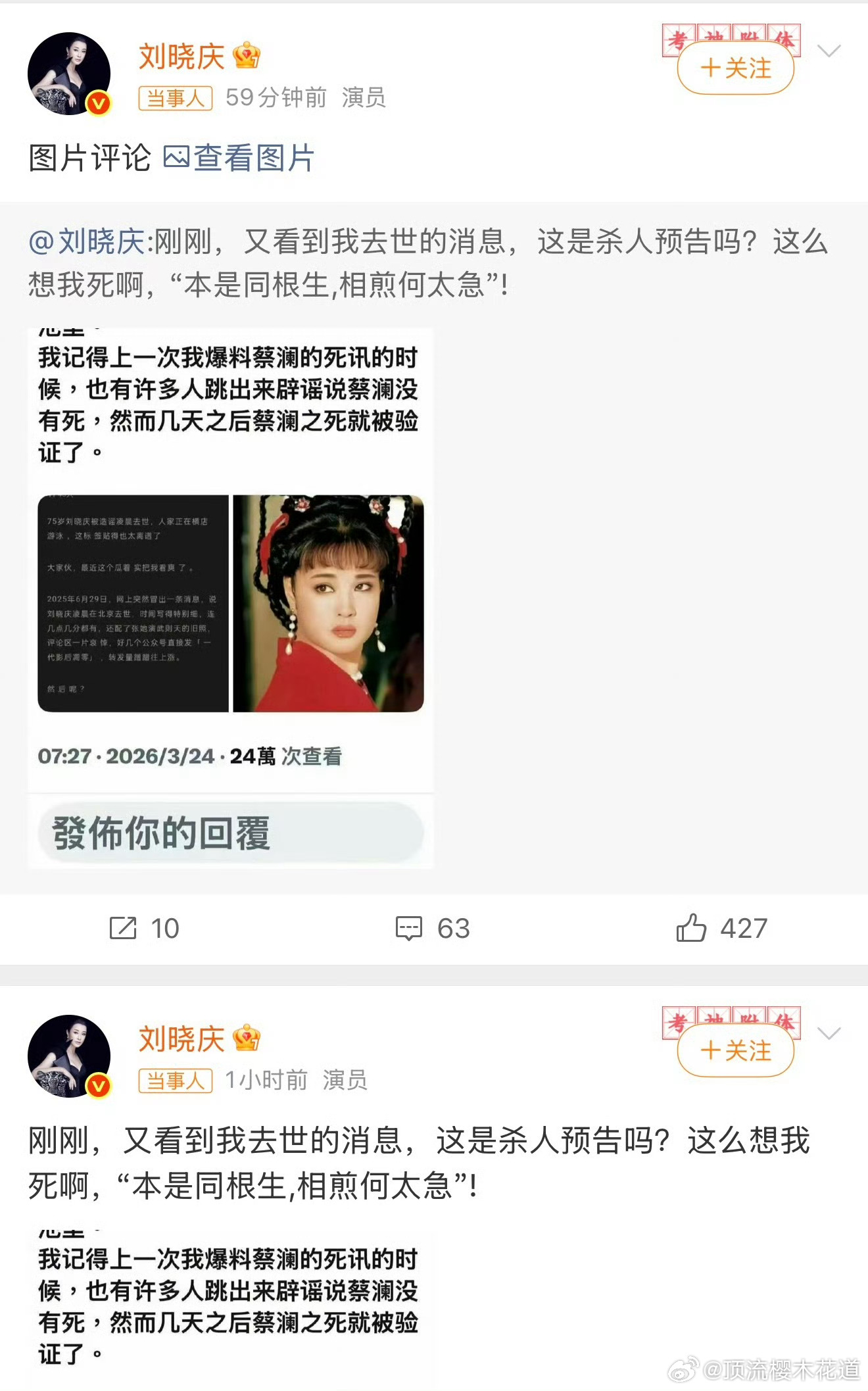 刘晓庆亲妹妹一家希望她没有后代我天,这吃相也太难看了,这样造谣的举动实在是太失智