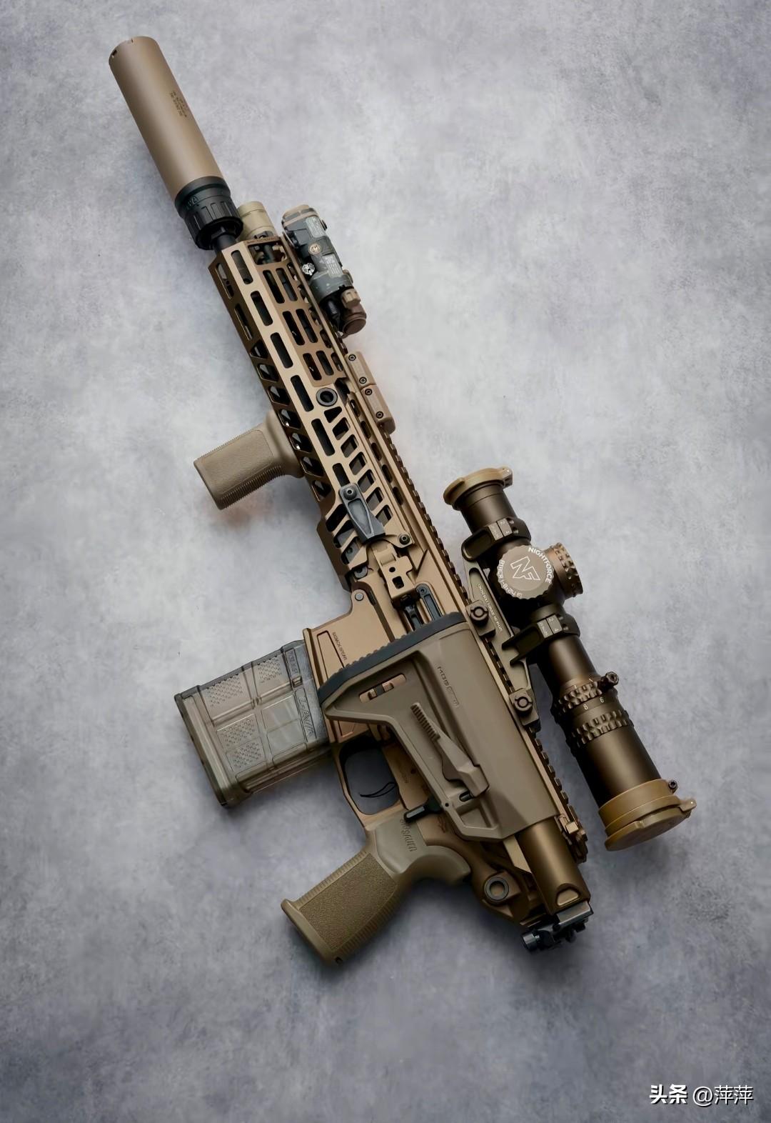 这把沙色战术步枪是美国罗宾逊XCR-L,它采用长行程活塞导气,左侧非随动拉机柄,可靠性远超AR-15。模块化设计可快速切换5.56、7.62等多种口径,护木与上机匣一体成型,精度与耐用性拉满。虽竞标美军特种部队失败,却凭借硬核性能成为战术圈“低调神器”,也是不少军迷心中的“完美AR替代者”。