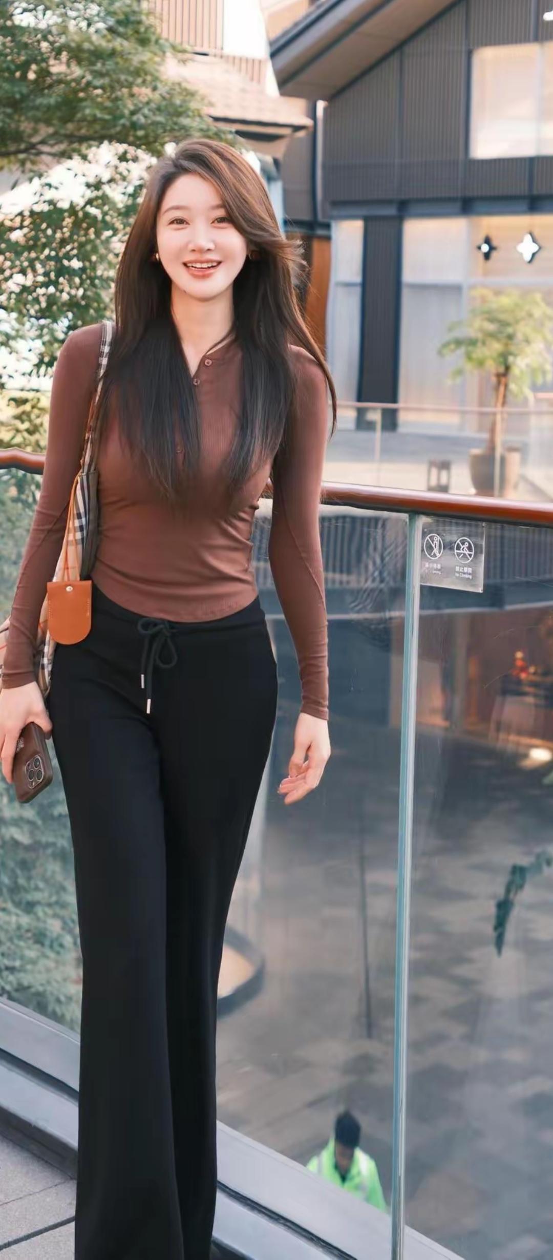 秋日暖阳下,红衣少女倚墙而立,古风韵味十足。
