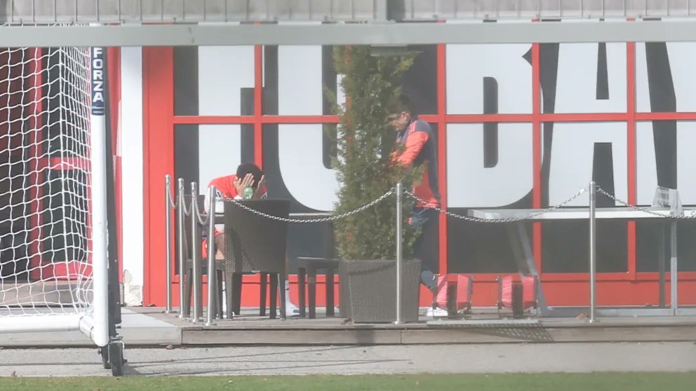 穆夏拉昨天出现在塞贝纳大街,但没有在场上进行训练,他和康复教练西蒙一起坐在走廊上,进行了20分钟的对话。[图片报]