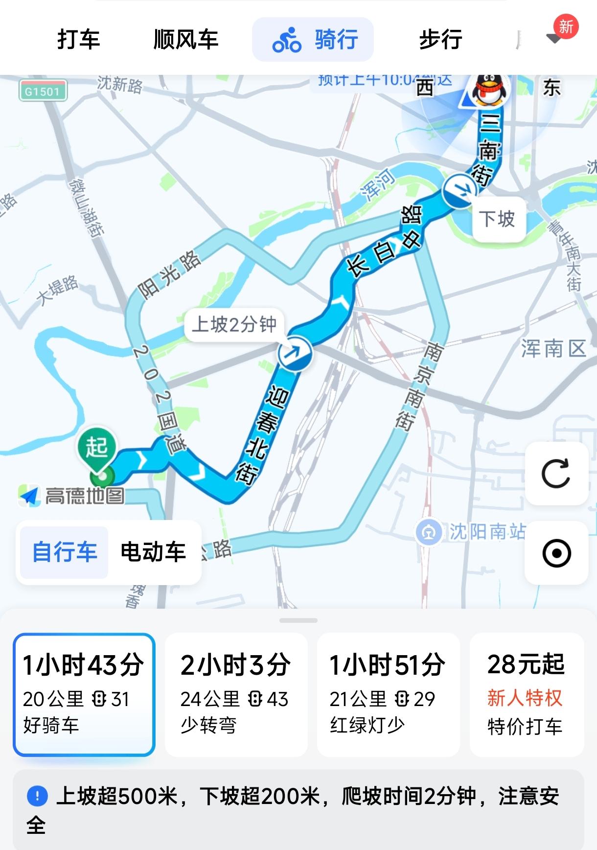 重要发现!沈阳沈水产业新城孔雀城居民骑单车1.5小时终于摆脱没有公交车的历史! 目前孔雀城位于沈阳三环边,比邻铁西经开区工业大学,位于苏家屯沈海高速的西侧,在之前有公交车到于洪新城,后来停运,这里居民出行只能先到苏家屯在乘坐327/165/324/335/333到达市区,严重的降低了出行效率,这里居民反映了很长希望公交车延长这里,但是一直没有如愿,尤其伴随油价上涨,出行成本提升,有什么办法可以解决出行难? 答案来了,就是骑单车! 亲自测算了,从孔雀城骑行单车一般仅仅需要90分钟就可以到市中心,当然在途经上坡路段是走路的,如果到地铁口更节省时间,既能节约钱,又可以锻炼身体,可以说是非常好的事情,沿路边不着急慢慢的走,注意滑坡注意下波,就是摸屁股外,整体来说还是不错的,解决了市民出行难题,这点共享单车还是不错的,解决城市公交车布局不完善的问题!