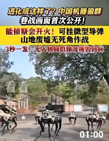 机器狼从“概念”走向“实战”:中国新一代机器狼城区演练! 组群战狼如何重塑巷战逻辑? 近日,中国兵器自动化研究所首次公开了最新一代机器狼群的巷战演练画面。这套由“暗影”(侦察)、“浴血”(打击)、“极地”(保障)组成的智能集群系统,不仅展示了高达 15 公里/小时的机动性能和复杂的战术协同能力,更标志着我国无人作战体系从单一功能向“空地一体、人机协同”的实战化跨越。 这次三位一体的战术编组 ,不同于以往单一的机器狗展示,此次公开的机器狼群构建了完整的作战闭环: △侦察先锋“暗影”:作为战场感知的触角,利用红外与视觉传感器构建三维地图,并将数据实时回传至指挥终端,为后续行动提供“上帝视角”。 △火力核心“浴血”:搭载微型导弹、榴弹发射器及 191 自动步枪,具备自主识别与瞄准能力。值得注意的是,其开火指令仍需人工确认,体现了“人在回路”的伦理与安全原则。 △后勤基石“极地”:负重达 25 公斤,不仅能跨越 30 厘米高台,更能伴随突击单元进行弹药补给与装备维护,解决了无人作战“最后一公里”的续航痛点。 在性能层面,新一代机器狼拥有 12 个自由度的仿生关节,能模仿真狼步态,适应废墟、斜坡等复杂地形。然而,舆论场上也存在冷静的声音。回顾此前演习中机器狼被轻武器轻易击毁的案例,专家指出:“抗毁伤能力”是决定其能否大规模列装的关键。 目前的轻量化设计虽提升了机动性,但在高强度火力网下的生存率仍是待解课题。未来的迭代方向,必将在保持灵活性的同时,强化关键部位的装甲防护。 这套系统的真正价值不在于替代士兵冲锋,而在于改变巷战的交换比。通过让机器承担高风险的探路、破门和火力压制任务,大幅降低人员伤亡。随着“蜂群”无人机与地面机器狼的联动日益成熟,中国正在构建一套领先全球的智能化立体作战体系,为未来城市战争提供了全新的“中国方案”。