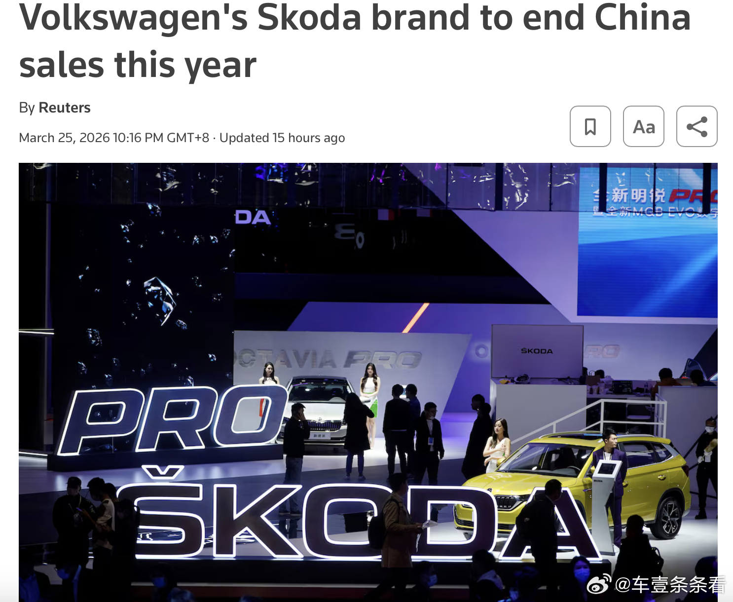 3月26日消息,据外媒报道,大众集团旗下斯柯达品牌,因无法跟上中国电动化转型节奏,将于今年年中前退出中国市场。对此,大众中国方面回应称:斯柯达汽车在中国的销售将持续到今年年中,此后仍将为车主持续提供全面的保修和售后服务支持。大众中国方面表示,斯柯达汽车对全球战略进行了调整,将重点聚焦印度、东盟等高增长市场。同时,大众中国强调,中国始终是大众汽车集团全球战略的核心。值得注意的是,中国曾连续多年是斯柯达最大单一市场。公开数据显示,2016年至2018年期间,斯柯达在华交付量超30万辆。但随着中国本土汽车品牌崛起,市场竞争日趋激烈,外资车企承压加剧,斯柯达在华销量持续下滑,去年已降至约1.5万辆。斯柯达将退出中国 (原创/欢欢)