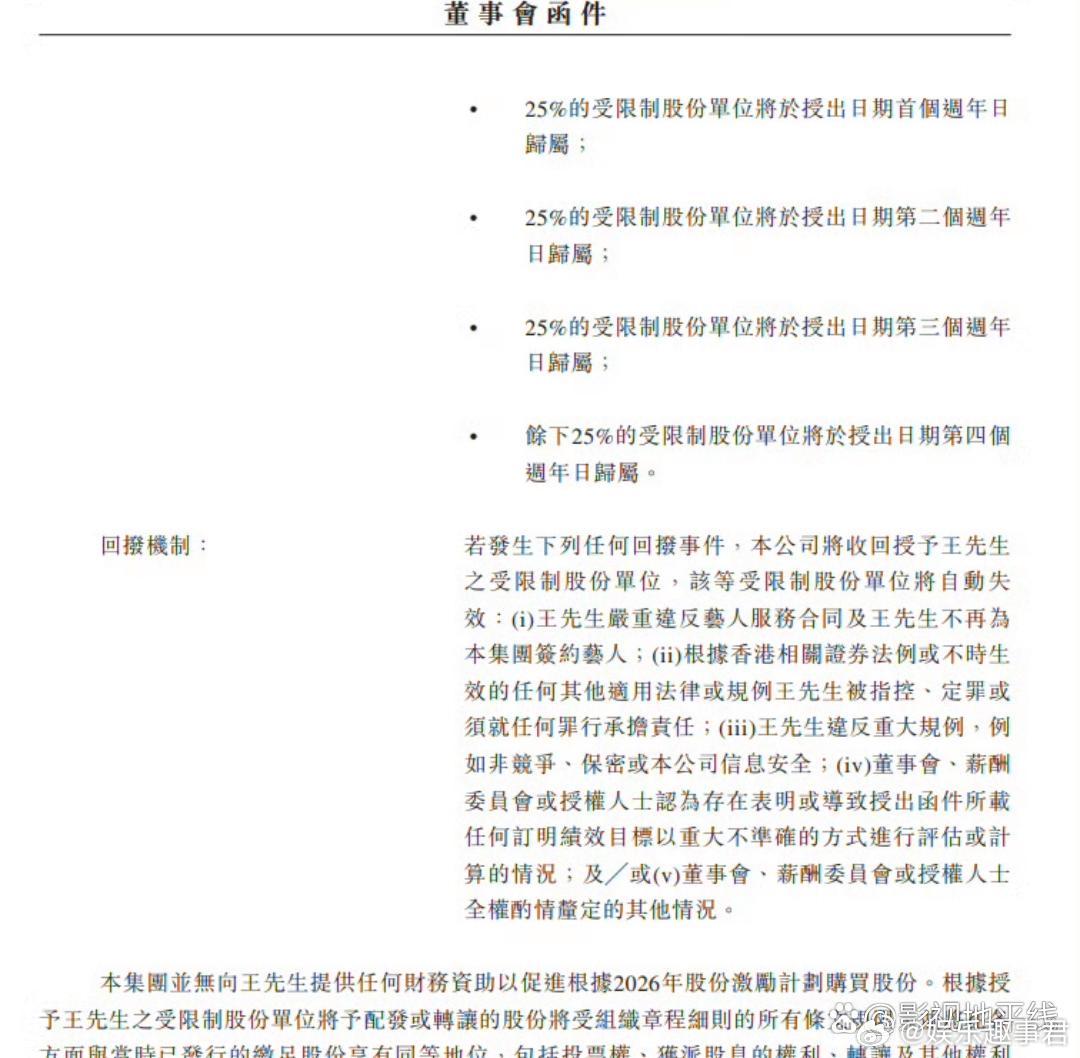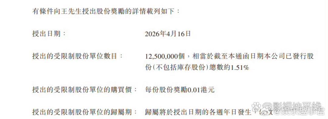 据乐华娱乐25日公开的董事会函件,公司建议有条件向王一博授出股份奖励:旨在认可及