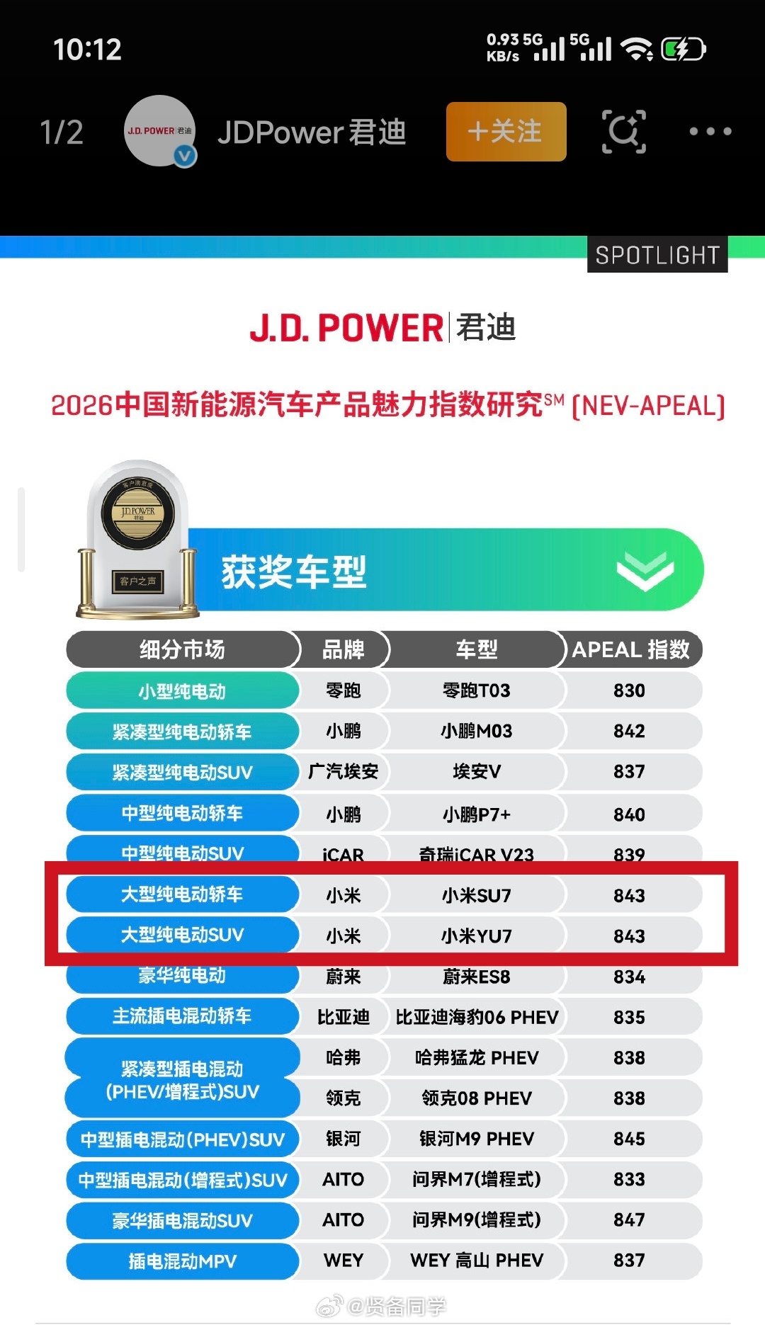 刚刚看到新J.D. Power新一期的“产品魅力指数(APEAL)”,小米汽车这波含金量直接拉满——SU7、YU7双双拿下各自细分市场第一。这个含金量不用多说这个榜单测的不是“你有多强”,而是“用户有多爱”,真实车主说了算,这就很有意思了。