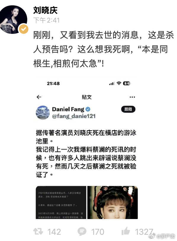 刘晓庆被造谣去世,引发她与妹妹、外甥的纠葛。