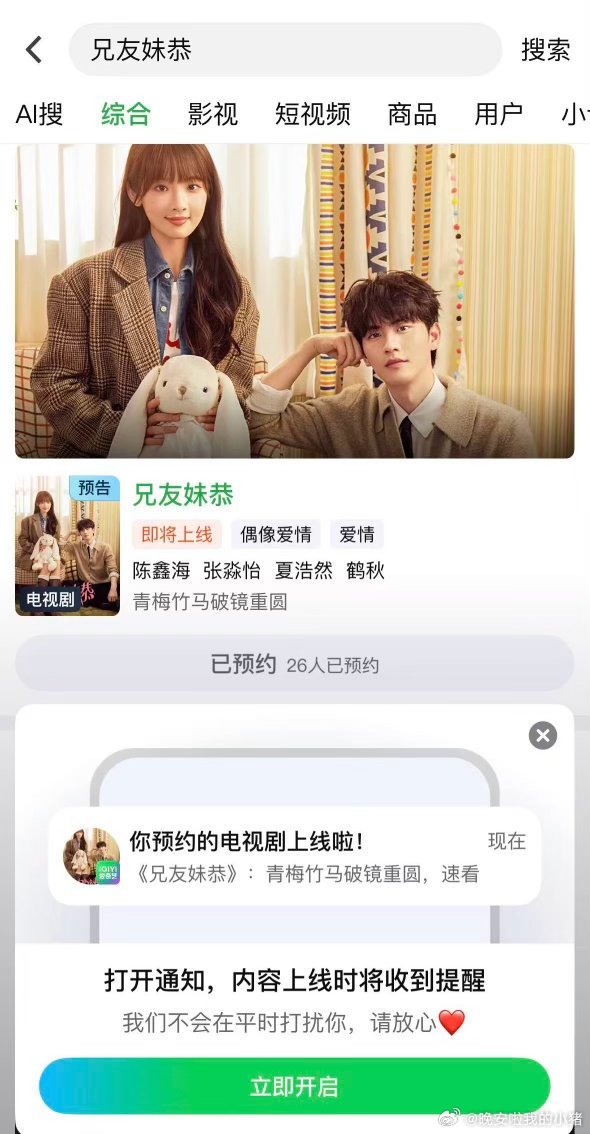 张淼怡的兄友妹恭分销爱奇艺了猜测距离上线应该很快了!以后就能腾讯爱奇艺双平台看啦