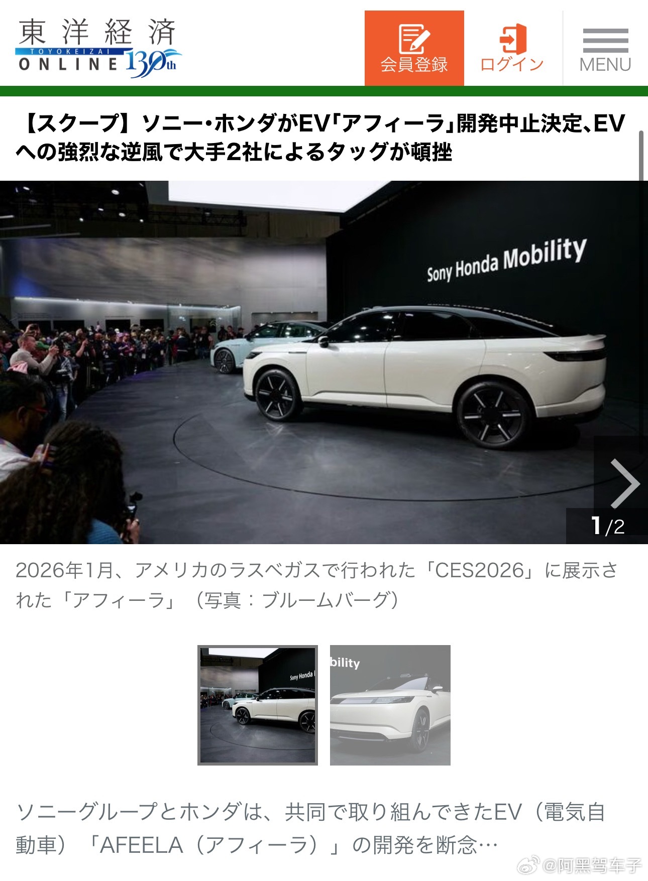 然而就如特朗普所言:没有人比日本更懂惊喜。2026年3月25Sony Honda Mobility宣布终止造车计划图一。曾亮相CES的Afeela 1轿车以及电动SUV都将不会上市。