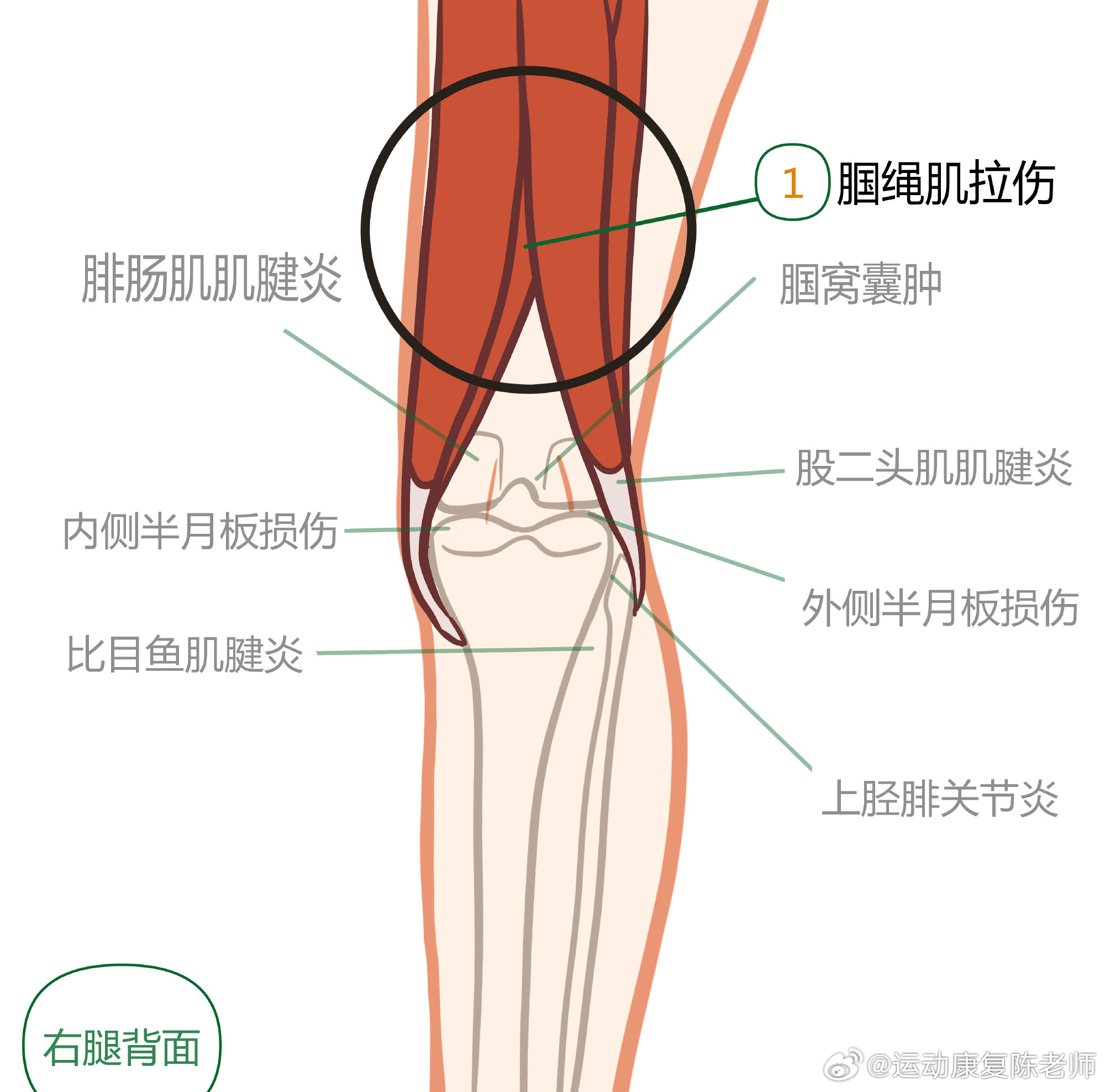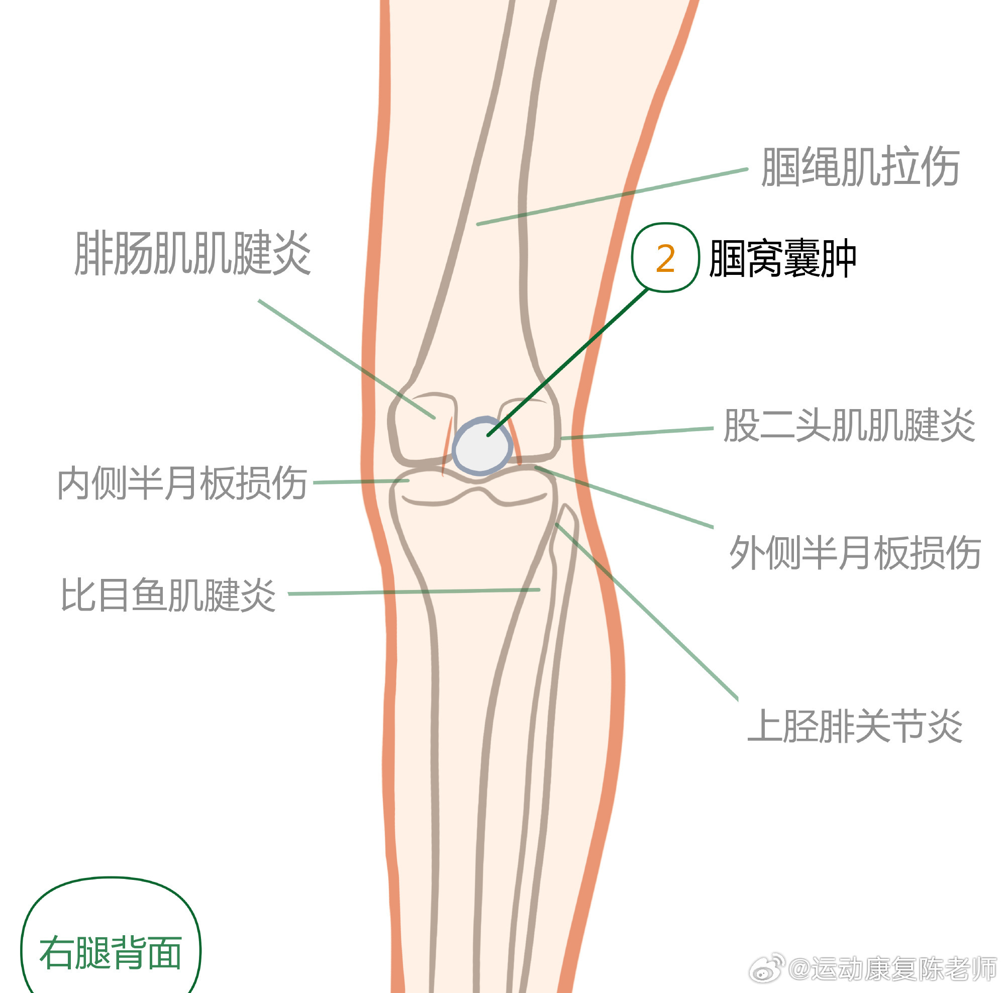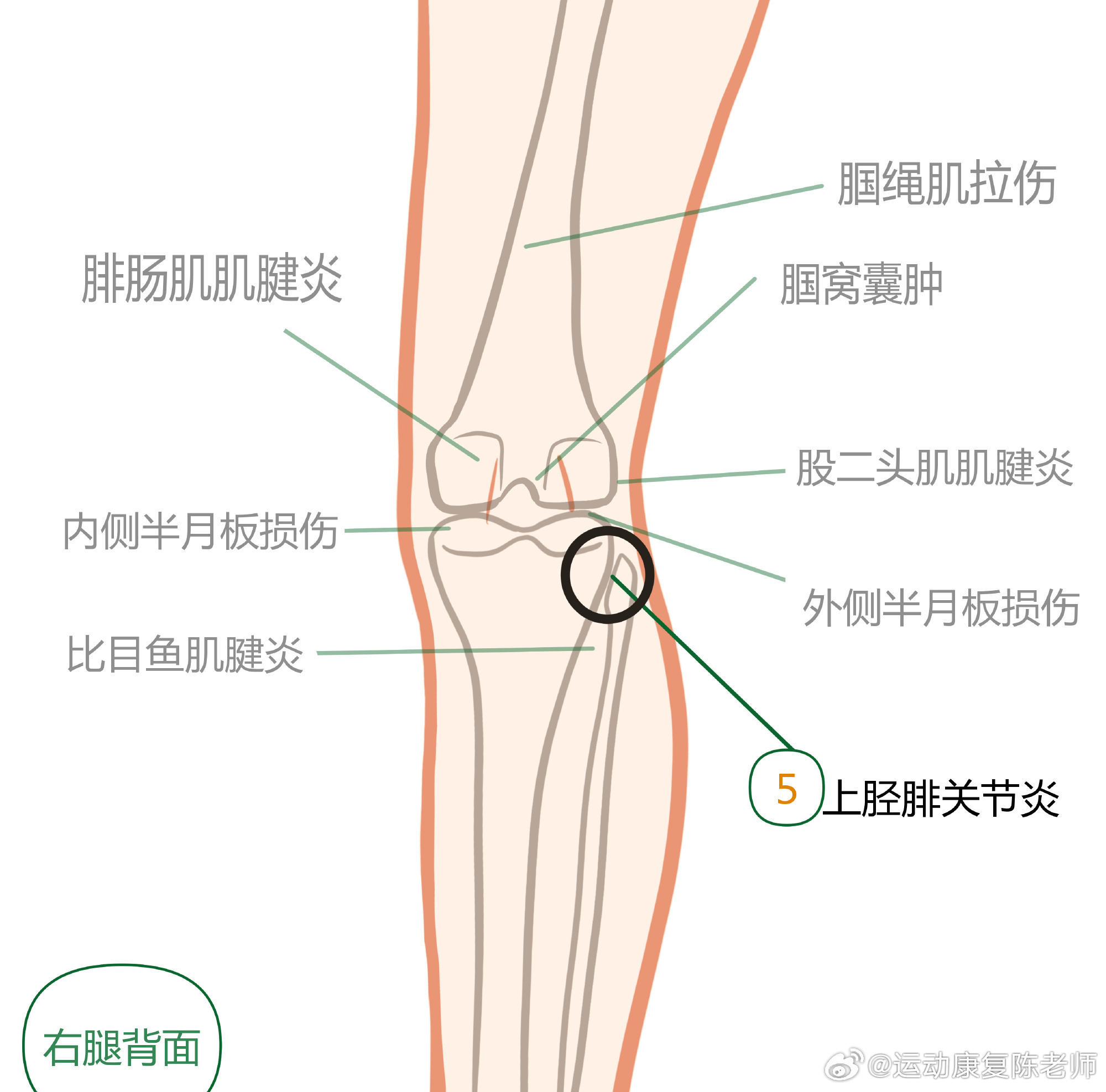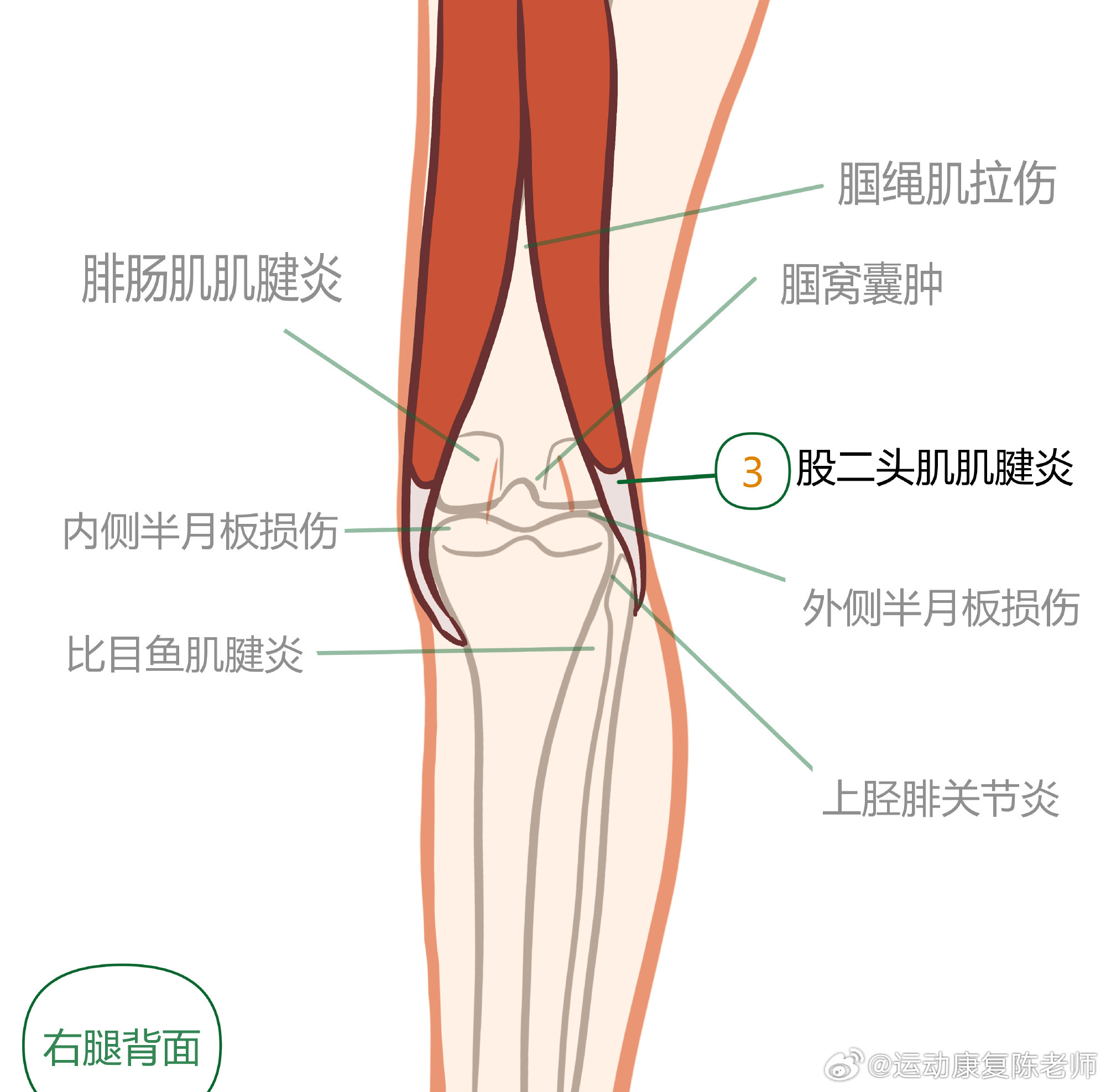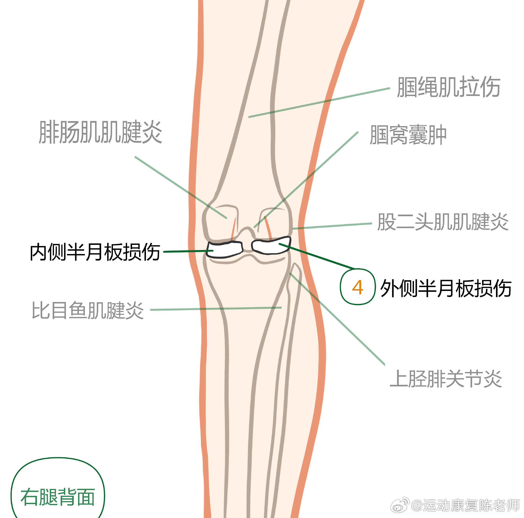 膝盖疼痛居家自测 中午讲了膝盖自测,平时提到膝关节前侧的损伤比较多,把后侧的这份盘点,再发给你们一次,温故而知新👇🏻👇🏻