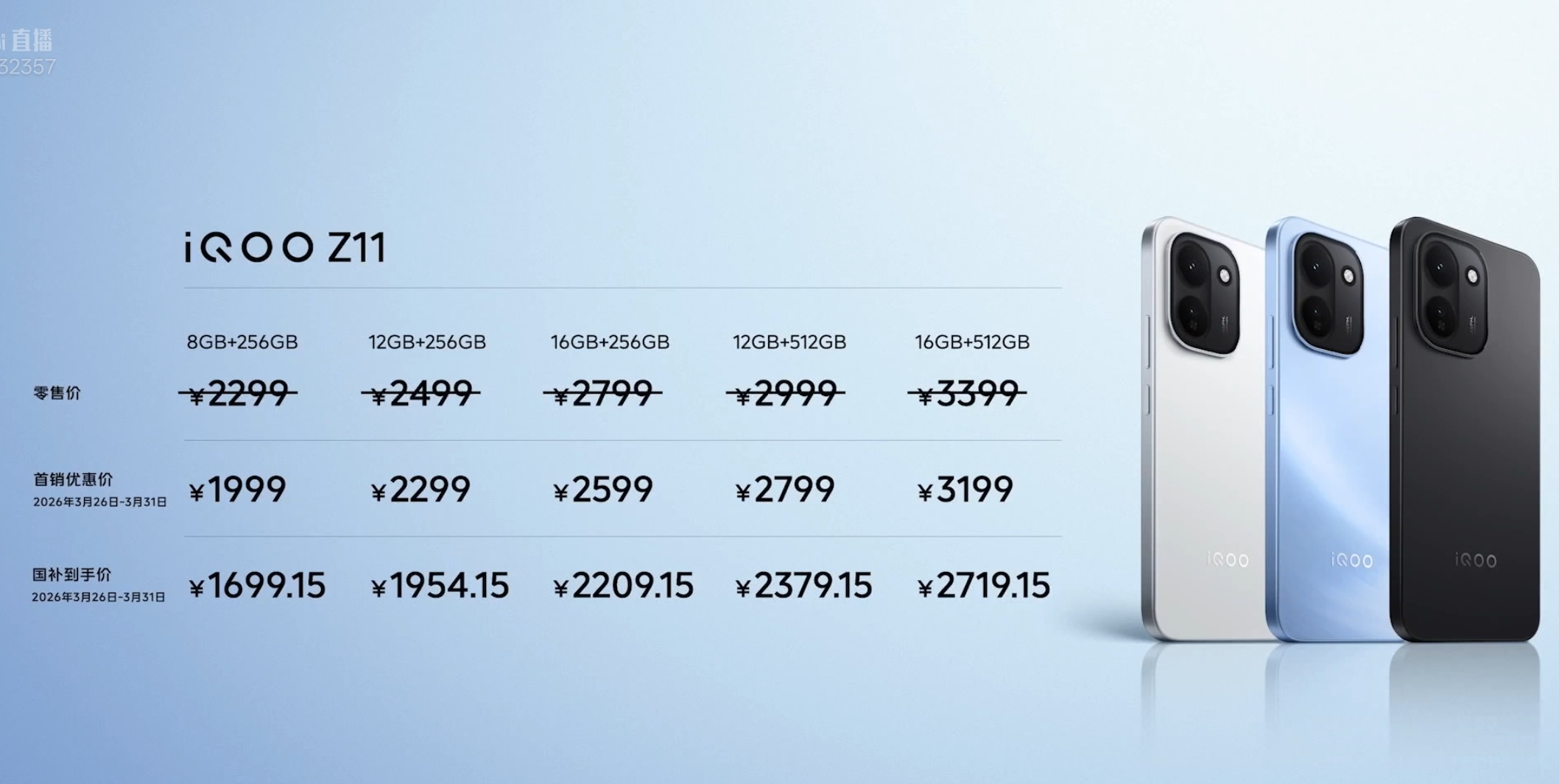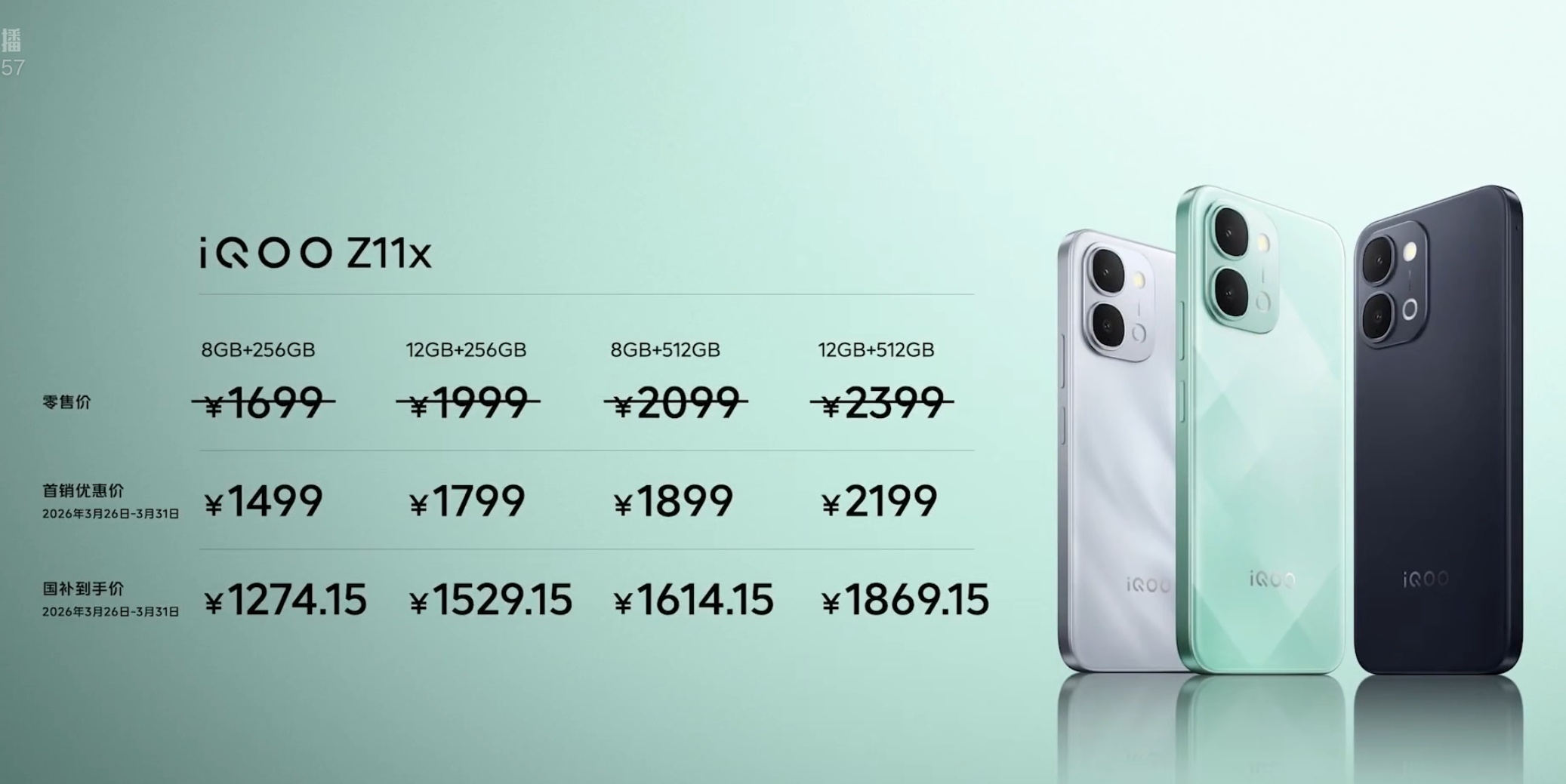iQOO Z11首销1999起,iQOO Z11x首销1499起,定价可以看出来