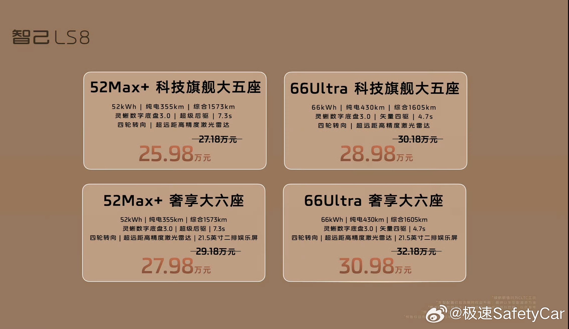 整体来看,智己 LS8 以亲民价格给到百万级底盘与顶流智能,标配即高配,堪称 30 万内兼顾家用、舒适与科技的全能旗舰 SUV。智己LS8跨时代科技旗舰SUV智己LS8震撼预售25.98万元起 大v聊车