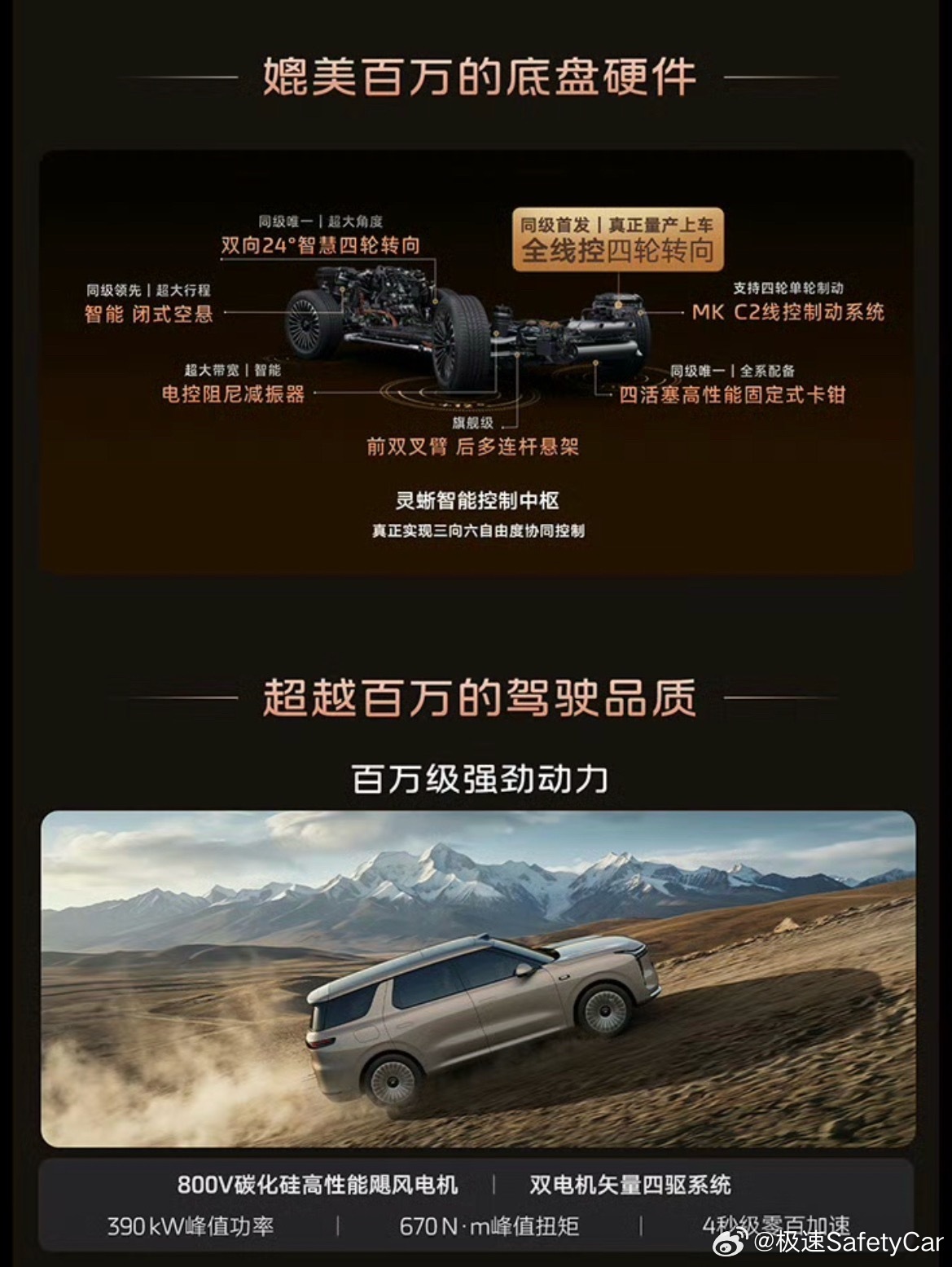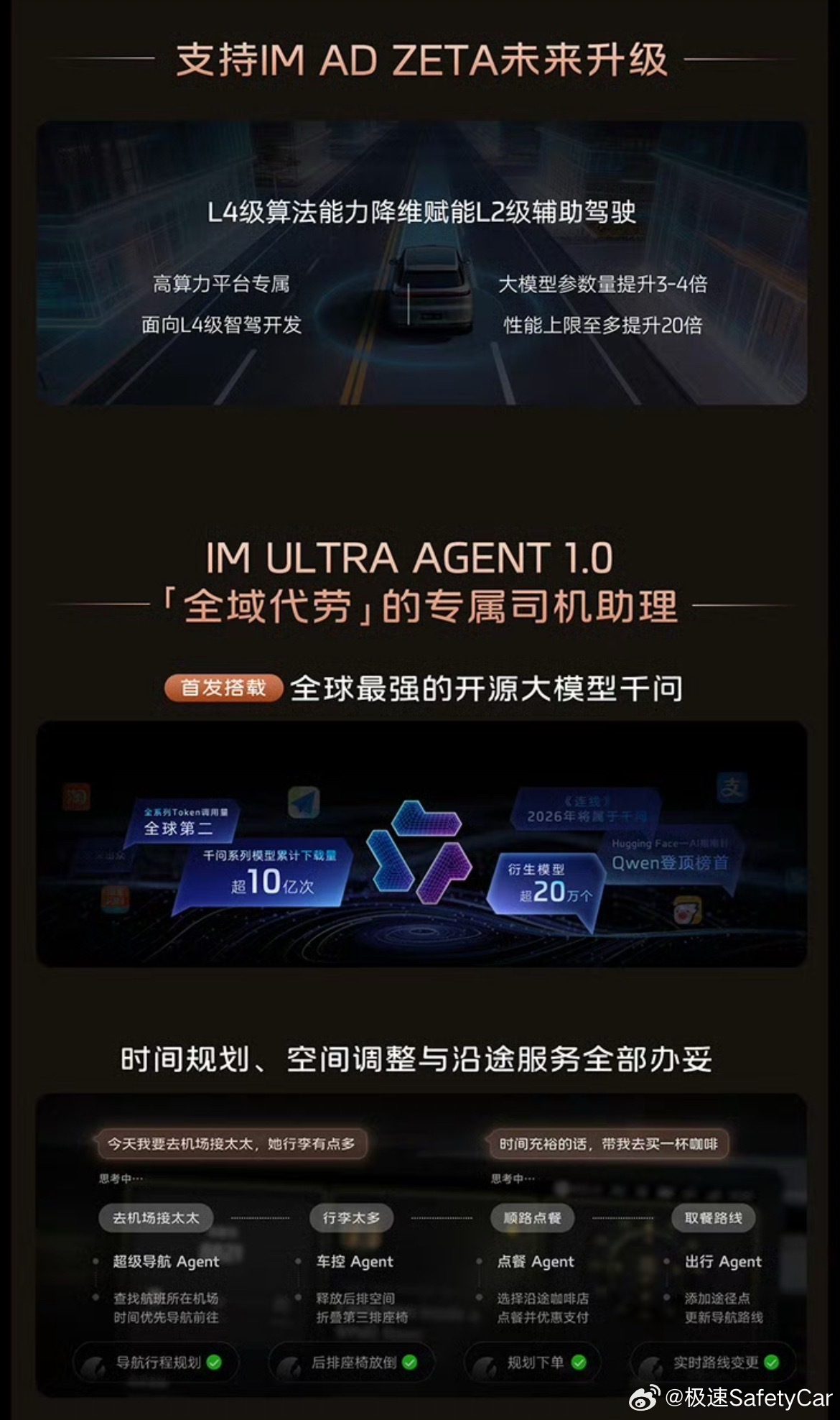 它最特别的两大核心亮点,一是全系标配双向 24° 智慧四轮转向 + 120mm 超大行程空悬,5 米多的大车转弯半径仅 4.85 米,比小型车还好开、好停,操控与舒适直接拉满;二是标配激光雷达 + 英伟达 Thor 芯片,首发搭载千问大模型座舱,智驾与车机智能双越级,带来同价位独一份的科技体验。