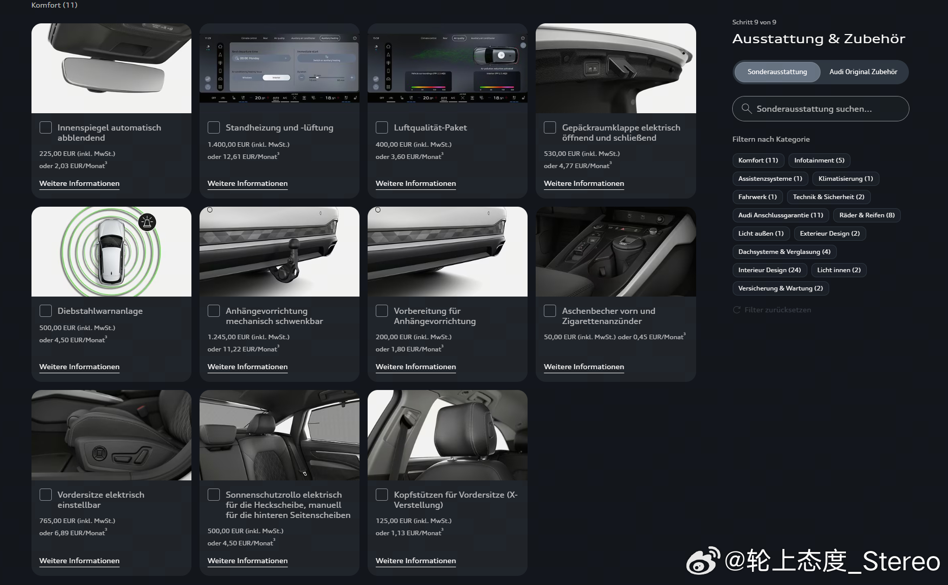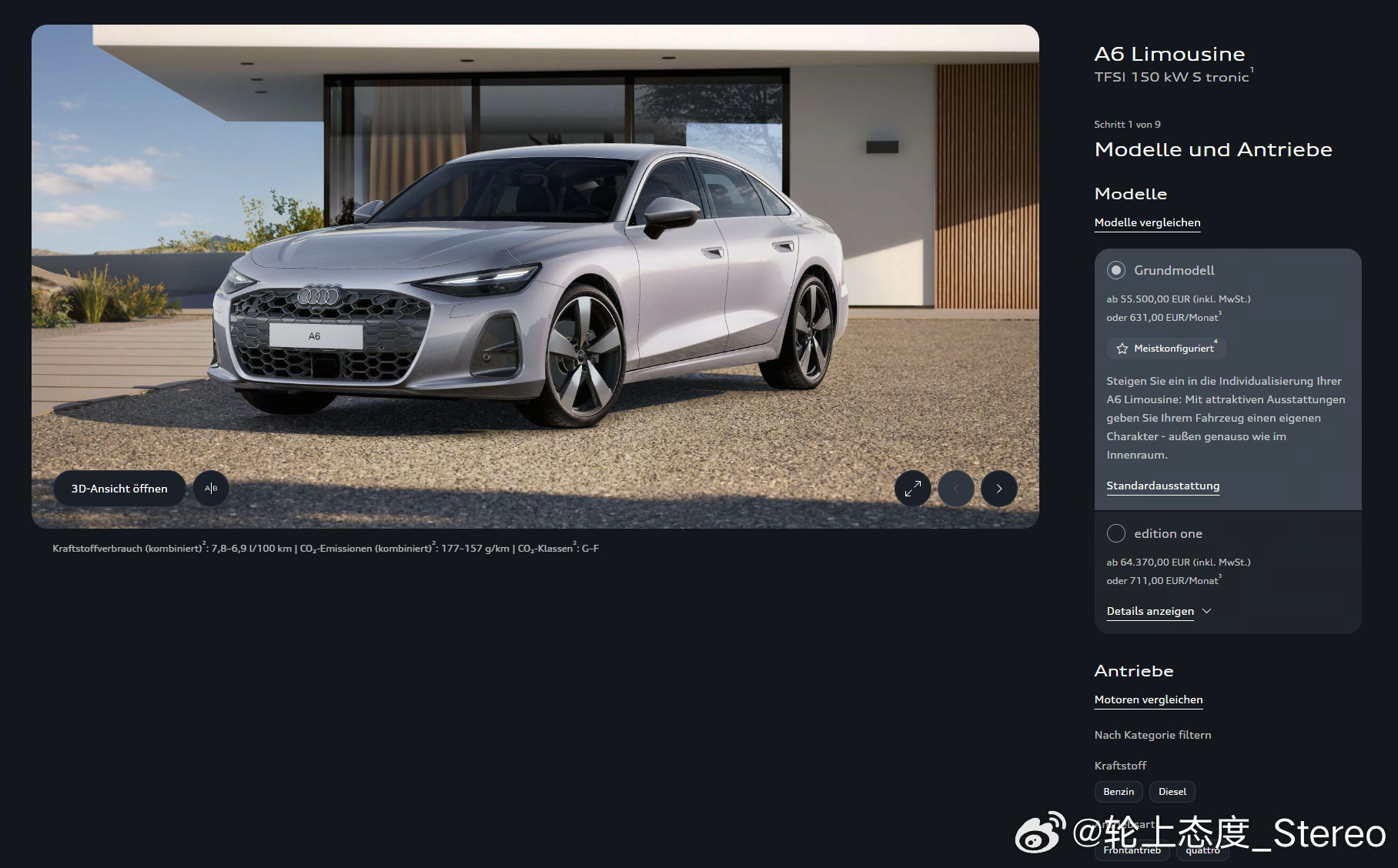 这两天全新奥迪a6l上市 ,国产SKU一如既往的简洁明了,两种外观,四个配置。但很多东西都是和车款绑定死的,比如后轮转向和空气悬挂强制绑定四驱车型,顶配头尾灯只有3.0车型可以选,动感外观还强制给来了黑化,有点僵硬啊然后我去看了一下欧版C9的官网,好家伙,再次打开新世界,车色比国内多五六种,轮毂从18寸肥胎到21寸大饼少说七八种,还保留了布座椅和基础的纯LED透镜灯,依旧可以选配拖车钩。其实很多国内德系玩家一直追求的“原厂逼车风”,往往就是欧洲车主们的选配日常如果国内也能逐渐放开选配,以销带产的话,我一定会去轩哥小轮肥胎布座椅的3.0四驱A6子,跑得又快巡航又舒服,真正顺手的车还得是自己选出来的。我与汽车的日常