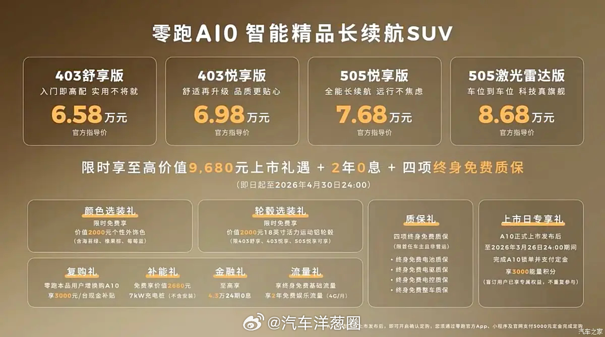 零跑A10价格出来了,6.58-8.68万元车我们看过,也试过,挺有好感的很适合不想将就的人