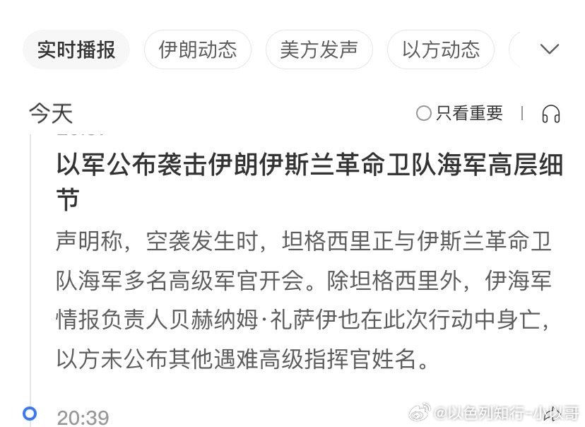 团灭伊朗封锁全世界的海峡,以色列代表全世界来把革命卫队铲除。海峡是国际水道,凭什么让恐怖分子控制?伊朗伊斯兰革命卫队海军指挥官身亡 伊朗不长记性,就会开会,结果被团灭了。海外新鲜事