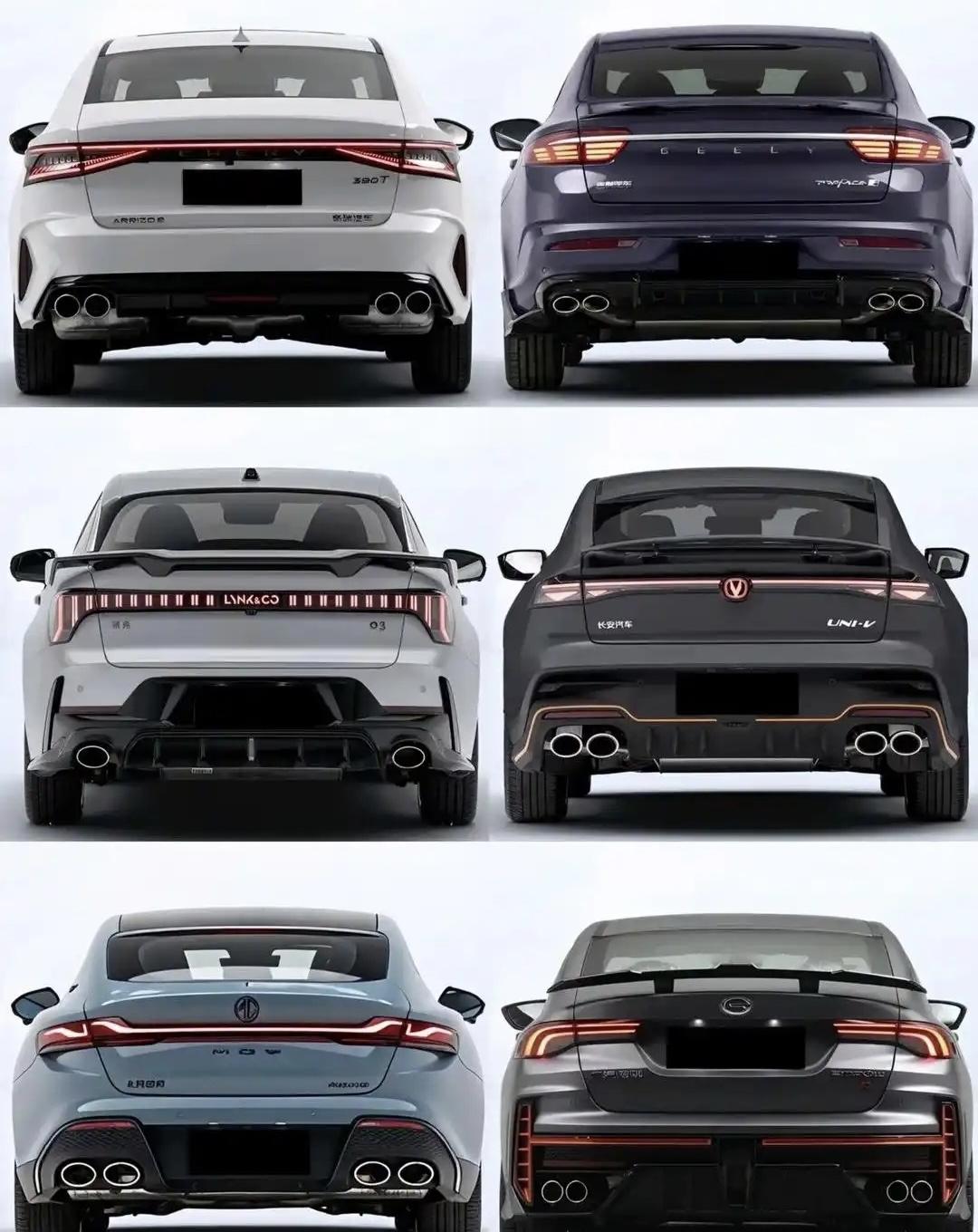 国产2.0T轿车,谁的车尾更好看?艾瑞泽8、星瑞、领克03、univ、名爵7和影豹,我觉得影豹有点鬼火,剩下的都还可以,mg7最好看,大家觉得呢?
