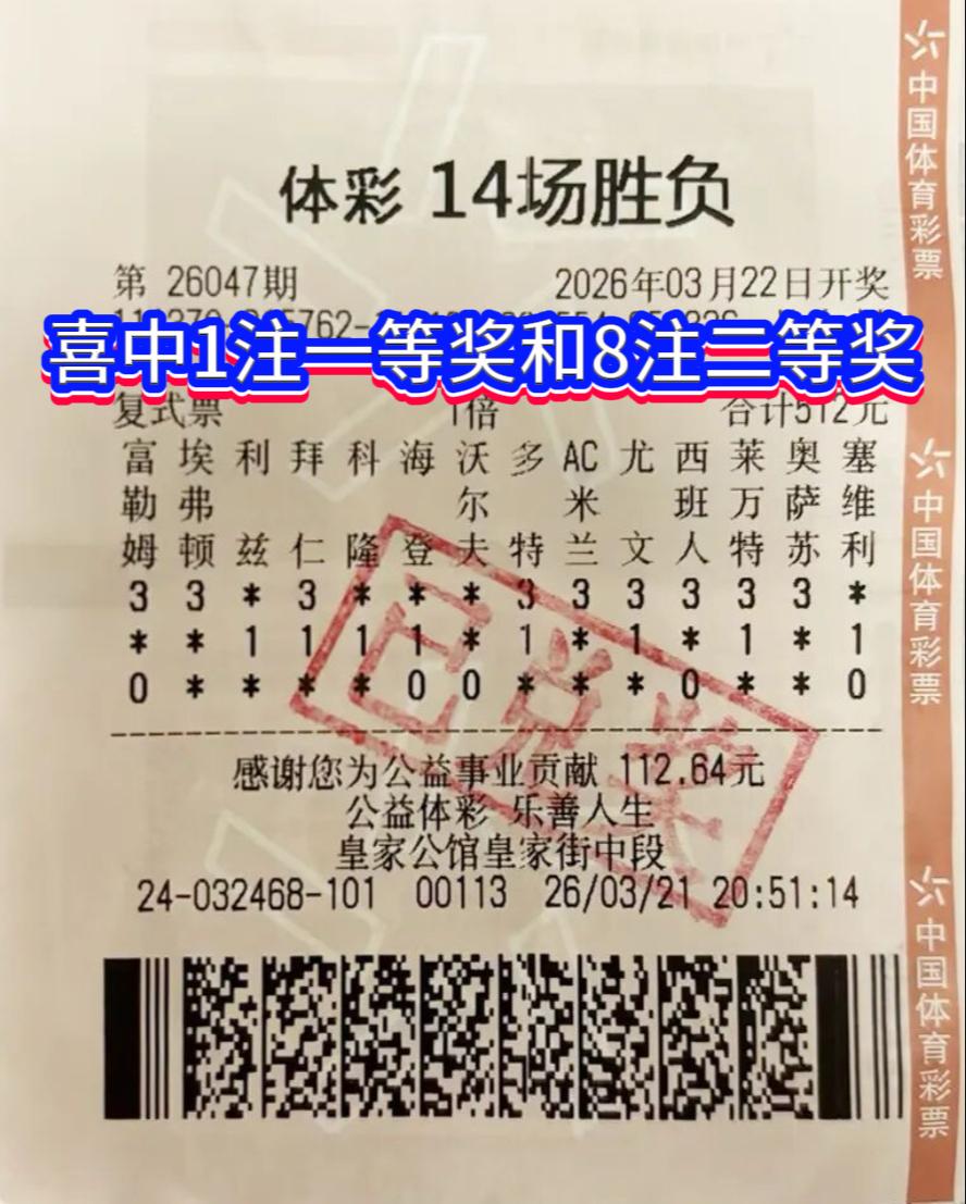 足彩胜平负游戏第26047期开奖号码为:33131103310330。本期共开出6注一等奖,单注奖金高达178万元;二等奖203注,单注奖金2.2万元,奖池资金被悉数清空。其中一注一等奖花落山东滨州,由一位资深足球爱好者斩获。该幸运儿凭借一张复式投注票,一举揽获1注一等奖及8注二等奖,累计收获奖金超过196万元。 据了解,这位中奖者对英超、西甲、德甲、意甲、法甲欧洲五大联赛的球队实力与赛事动态素有研究,此次能够命中大奖,正是其多年观赛经验积累的成果,也得益于和投注站业主的反复推敲与共同谋划。 四年一度的美加墨世界杯将于6月11日拉开战幕。朋友们,你们的看球计划,都准备好了吗?