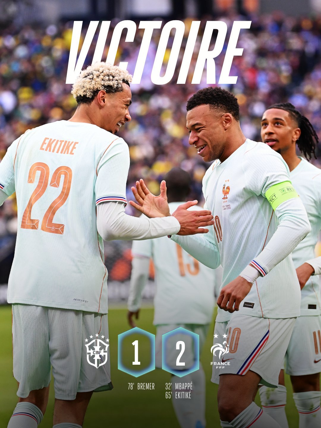 【国际友谊赛】 法国2:1击败巴西队,🔴⚫️ 迈尼昂🇫🇷、拉比奥特🇫🇷