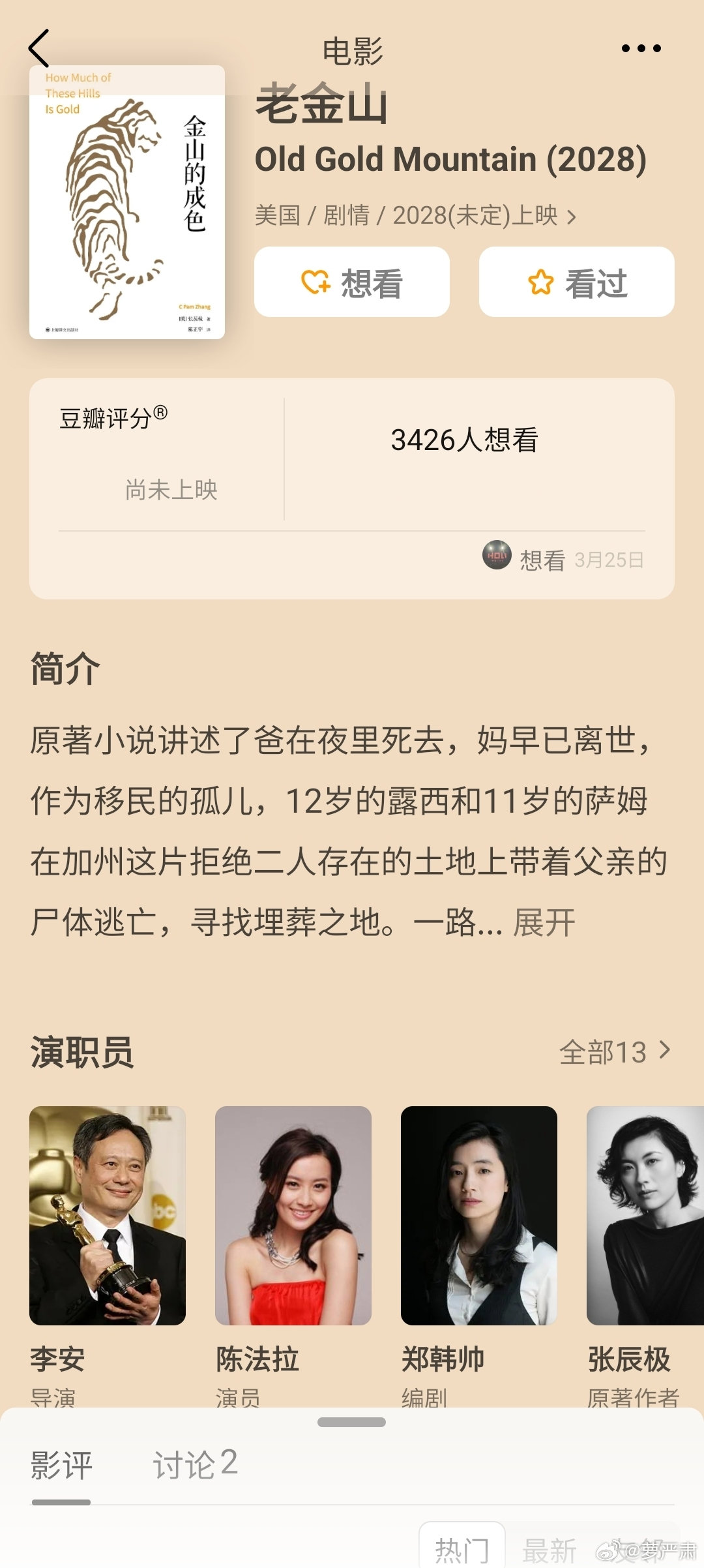 外媒报道章子怡参与李安新作《老金山》(Old Gold Mountain),陈法拉也是演员阵容之一。