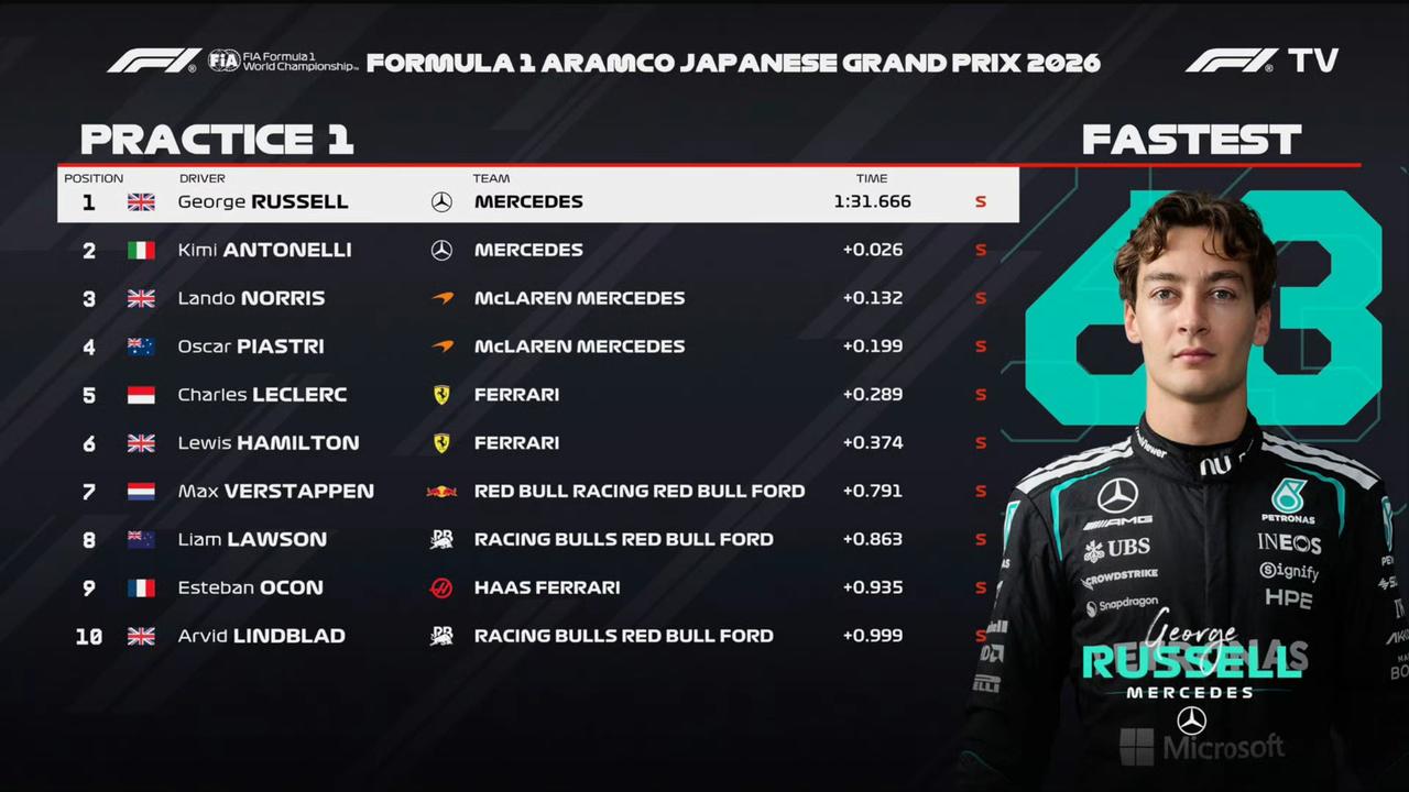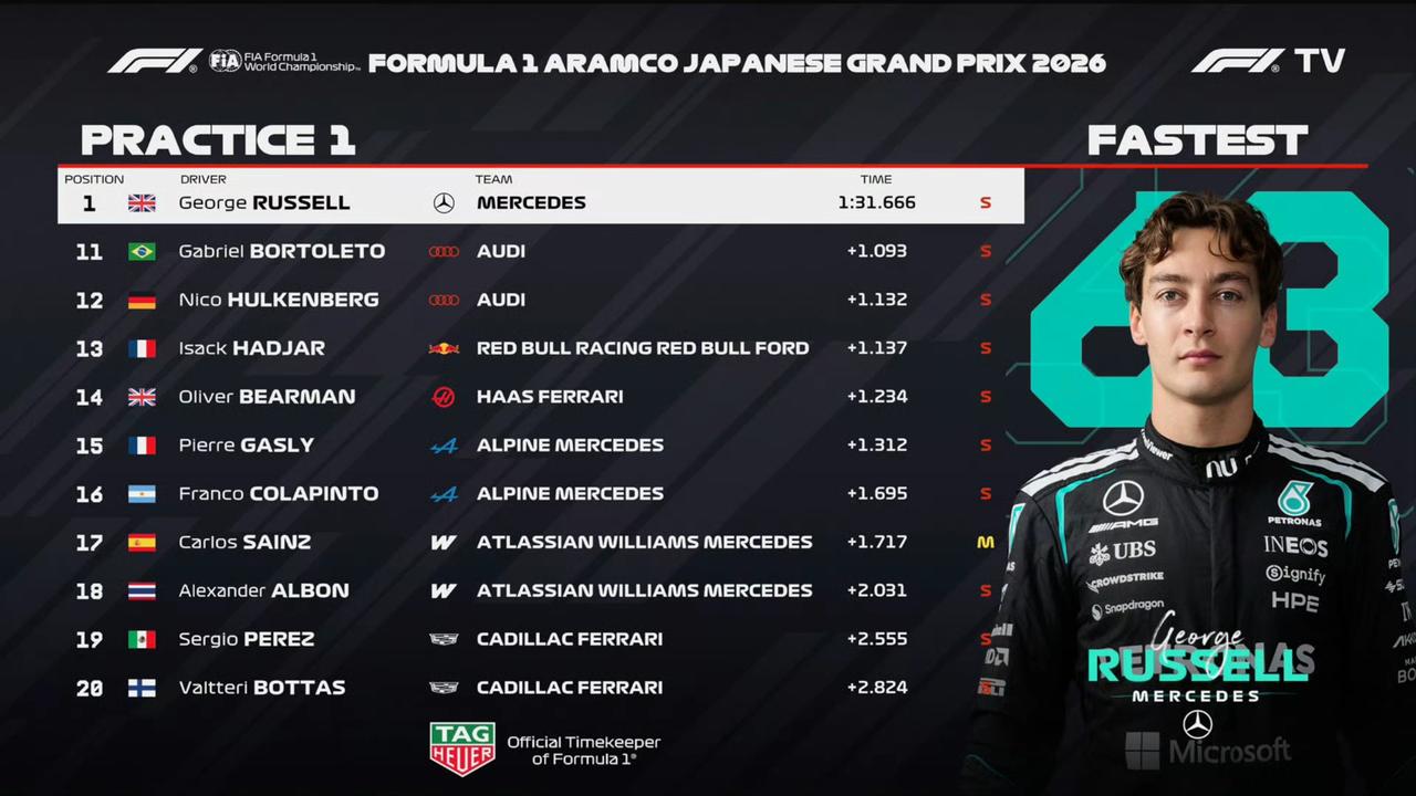 F1日本大奖赛一练结束,梅奔依然强势,但优势没那么大了,不知道是不是整改的原因。