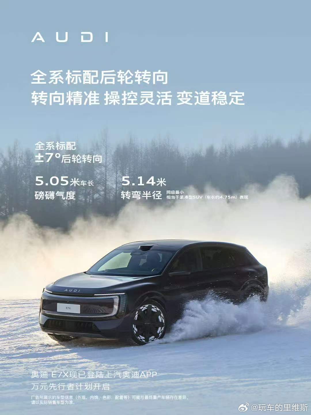 从燃油到电动,奥迪的四驱魂没丢,反而更懂怎么在冰雪路面“粘”住地面。奥迪E7X新公路之王