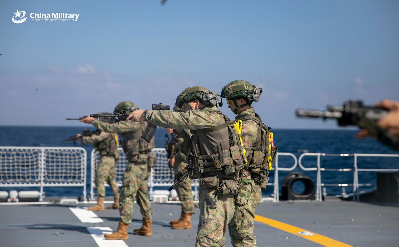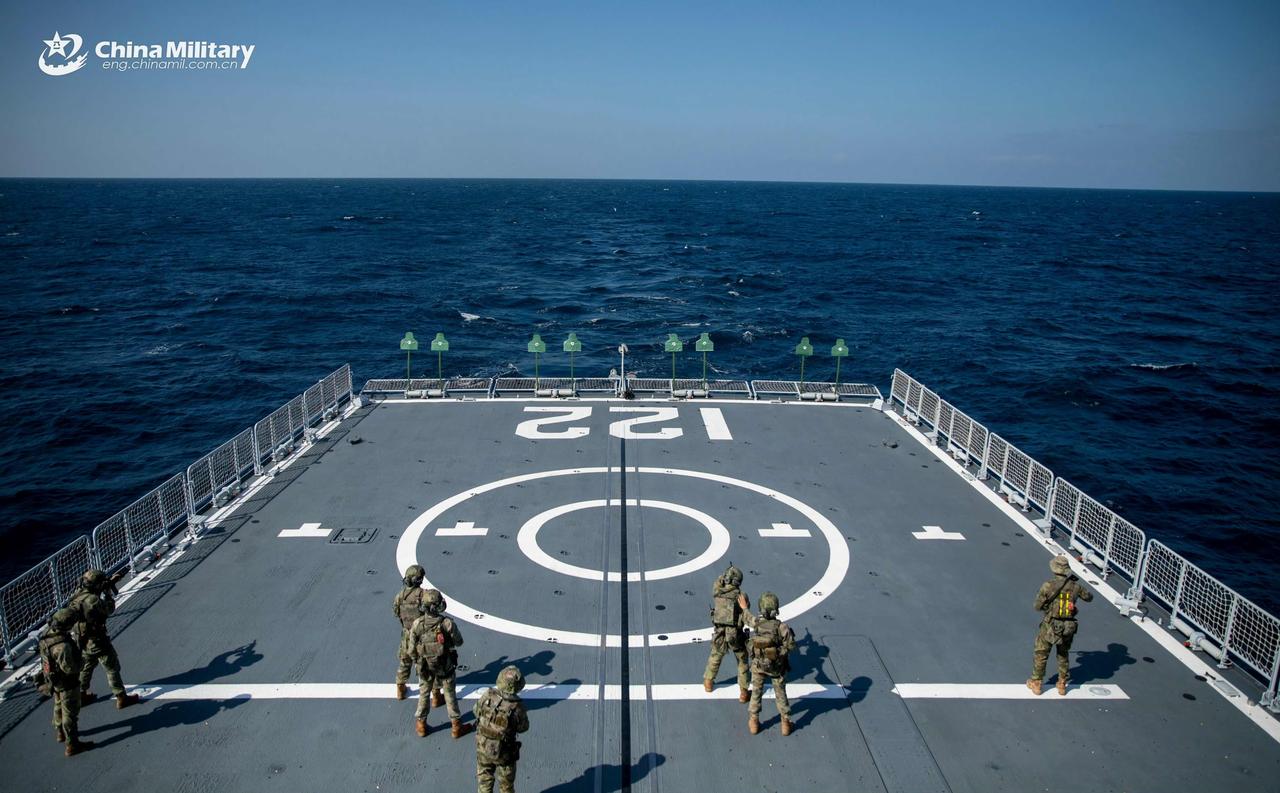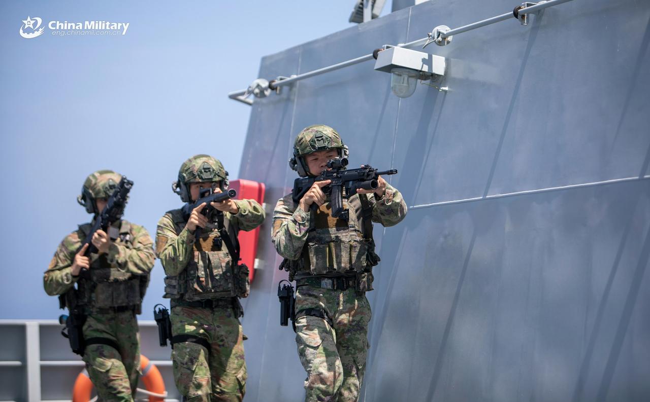 PLAN第48批护航舰艇护航编队特战队员在海上进行反海盗演习高清组图。