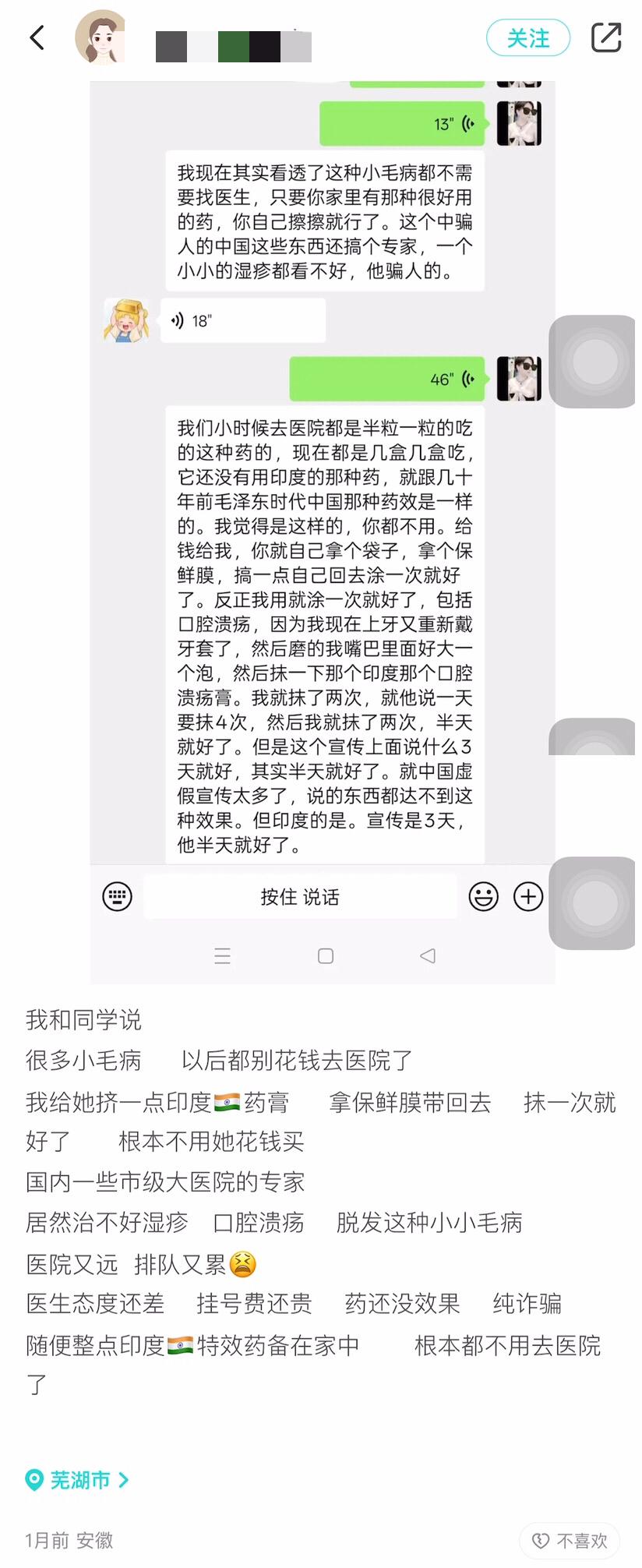 真难绷! 近日,一网友发帖鼓吹自己的印度男友,说他在中国闭着眼就能上985、211,认真点还有丰厚奖学金拿! 翻看其过往所发的帖子,她是卖印度产品的,你说你卖就卖吧,干嘛还要贬低国内! 还说什么乌兹别克斯坦保守,他们单纯、忠诚、一生一世一双人,只比印度离婚率高一点点… 这是吃了什么脏东西,居然还宣扬起印度婚姻了!印度离婚率确实低,但这不代表婚姻幸福!是因为社会规矩给她们套上了很多枷锁,她们不是不想离,而是离不起、不敢离,所谓的离婚率低只是硬撑的假稳定罢了!