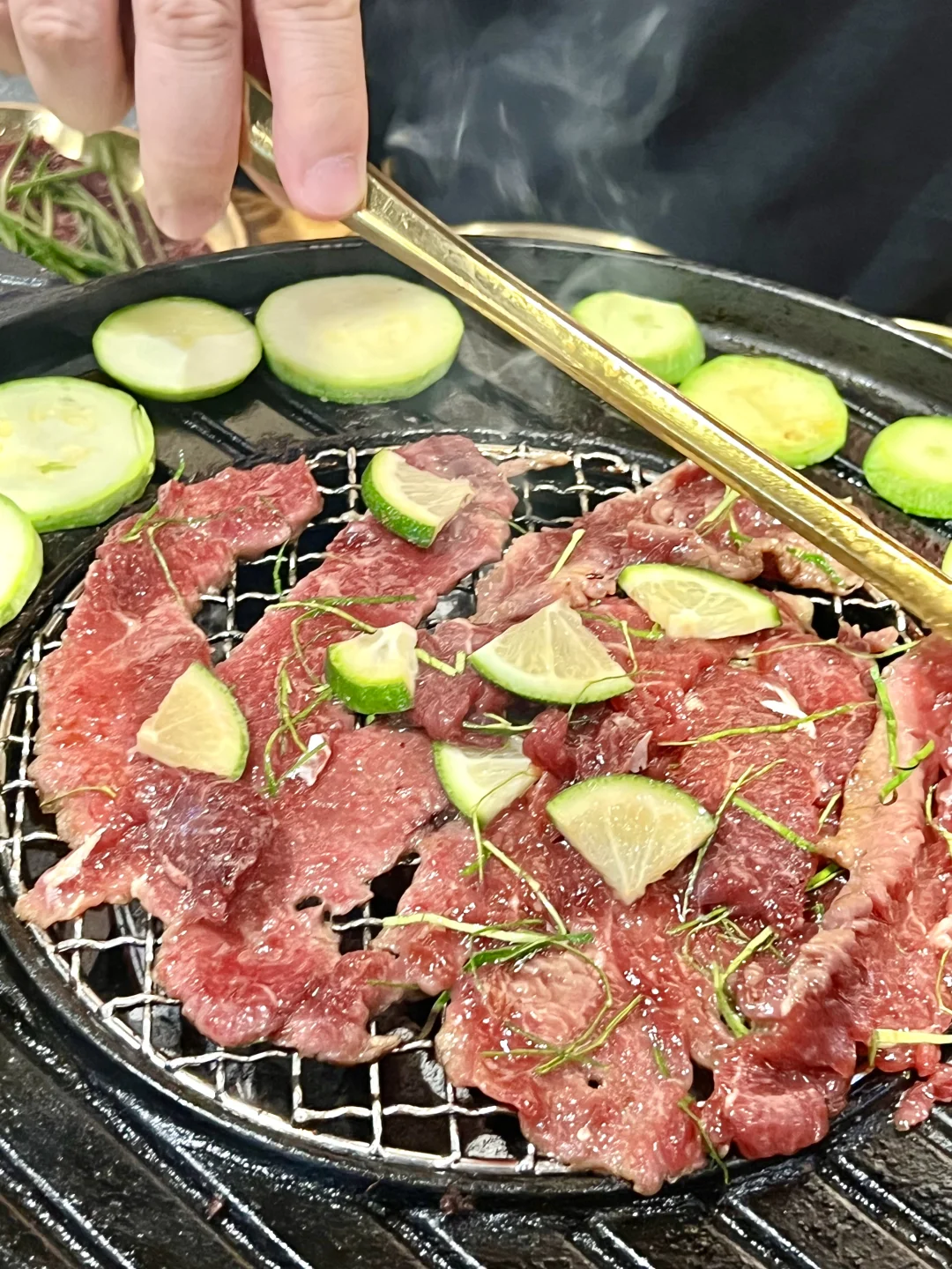 青柠和柠檬叶的清香完全渗进肉里,烤完之后那种油腻感直接被中和掉,酸酸甜甜的特别开胃