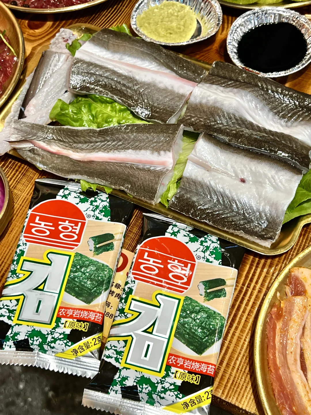只要58r!这分量真的没在开玩笑!外皮烤得焦焦脆脆的,刷上秘制酱汁香迷糊了~一定要用紫菜包着吃,那个口感真的绝了!