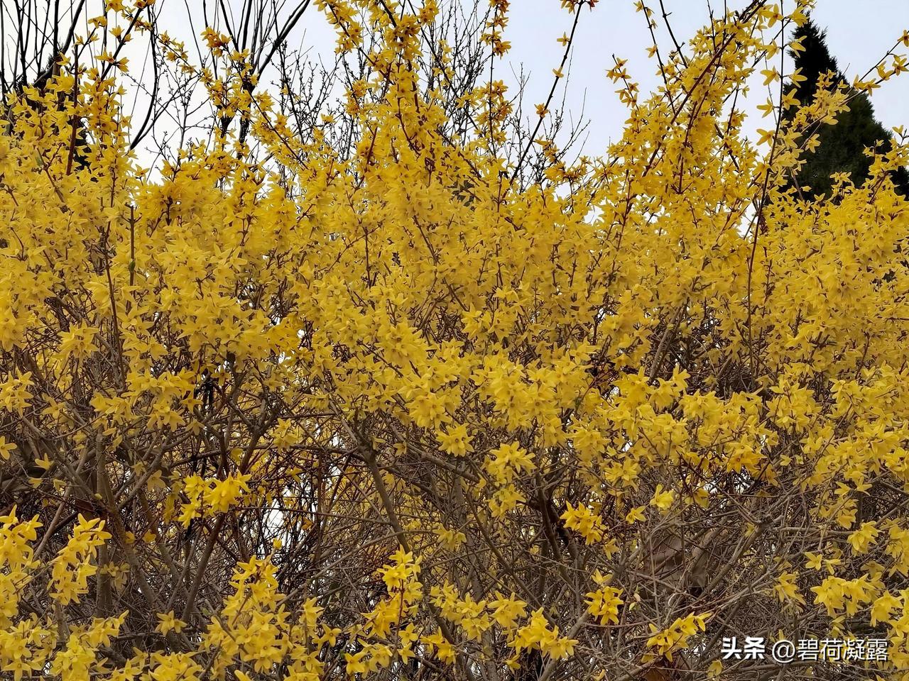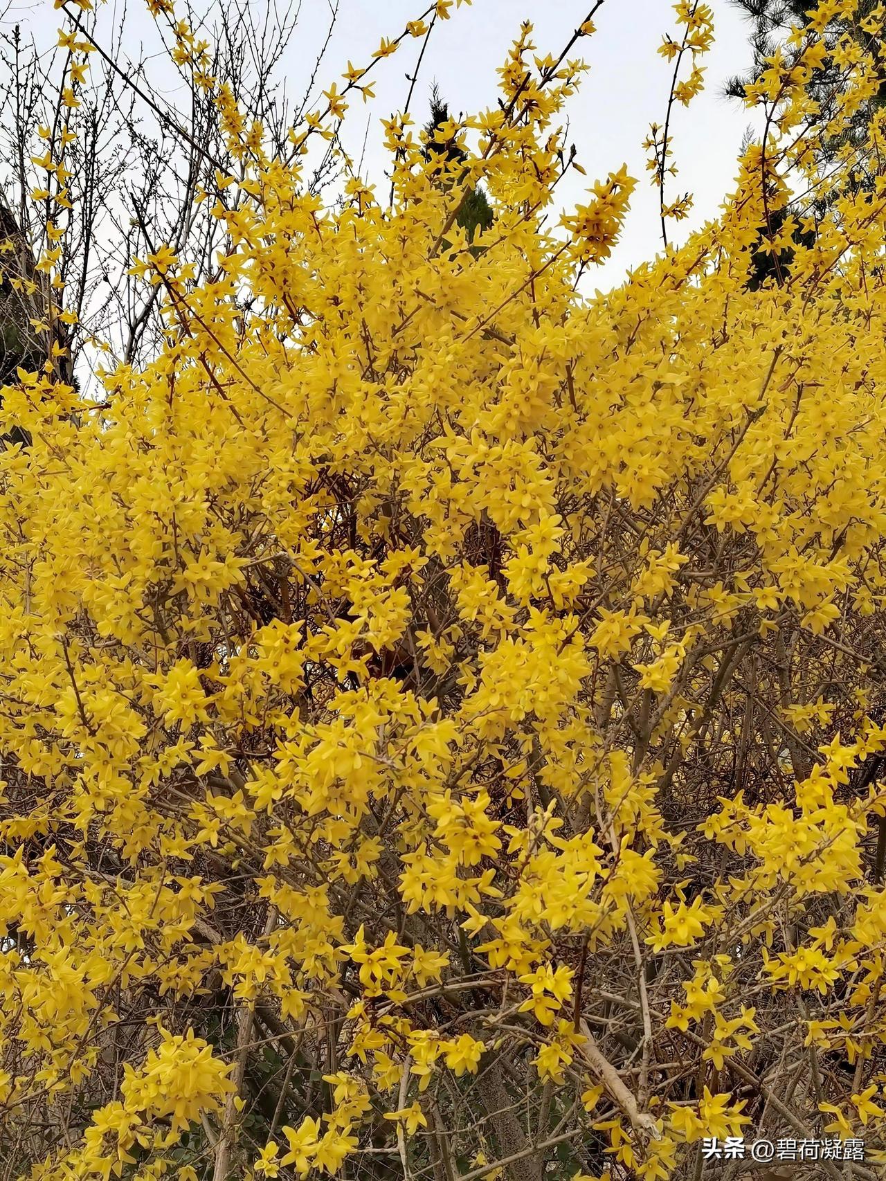 分享一组随拍的连翘花,连翘花和迎春花很相似,但是它们是绝对不一样的,连翘和迎春花的区别:1.数花瓣:迎春花的花瓣为5至6片,连翘的花瓣为4片。2.看枝条:迎春花的小枝条基本为绿色的,有明显的四条棱,而连翘的小枝条是黄褐色的,基本是圆型的。很容易区别的。连翘花开迎春来!