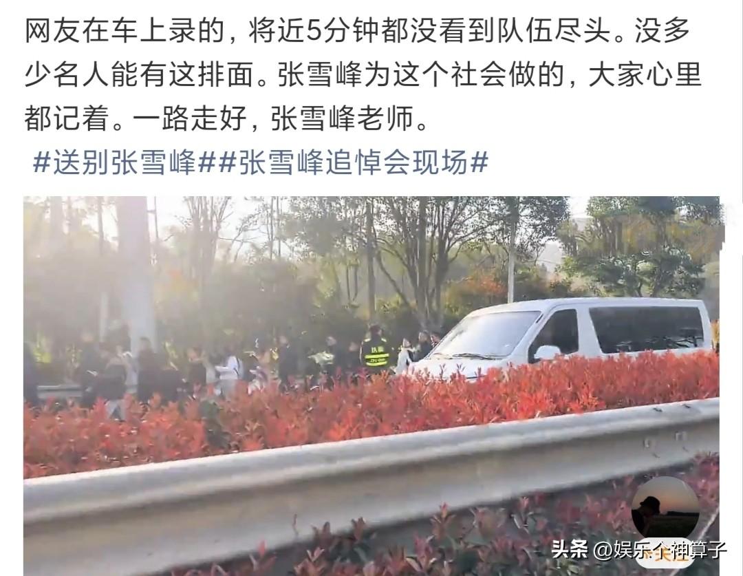 今天苏州的天气格外晴朗,全国各地的网友前来送别张雪峰老师! 3月28日,一大早,很多网友晒出视频,天气很好,车辆川流不息,虽然是周末,大街上的行人却明显增多。 全国各地的网友纷纷前来为张雪峰老师送别,从年龄来看,有学子,有家长,也有粉丝,甚至包括素未谋面的人。 一位网友透露,开车在大街上录制了5分钟,还没有看到尽头,大家手里捧着花,排着长队,井然有序。 视频中,看到网友送的挽联,还有学子的手写信,有些离得太远,人未到,通过网络,送来了鲜花,表达哀思。 此时此刻,很难想象曾受过张雪峰老师帮助的学子与家长,该有多伤心。 一个普通人,能让大家发自内心的前来送行,真的不容易。 愿逝者安息,一路走好!
