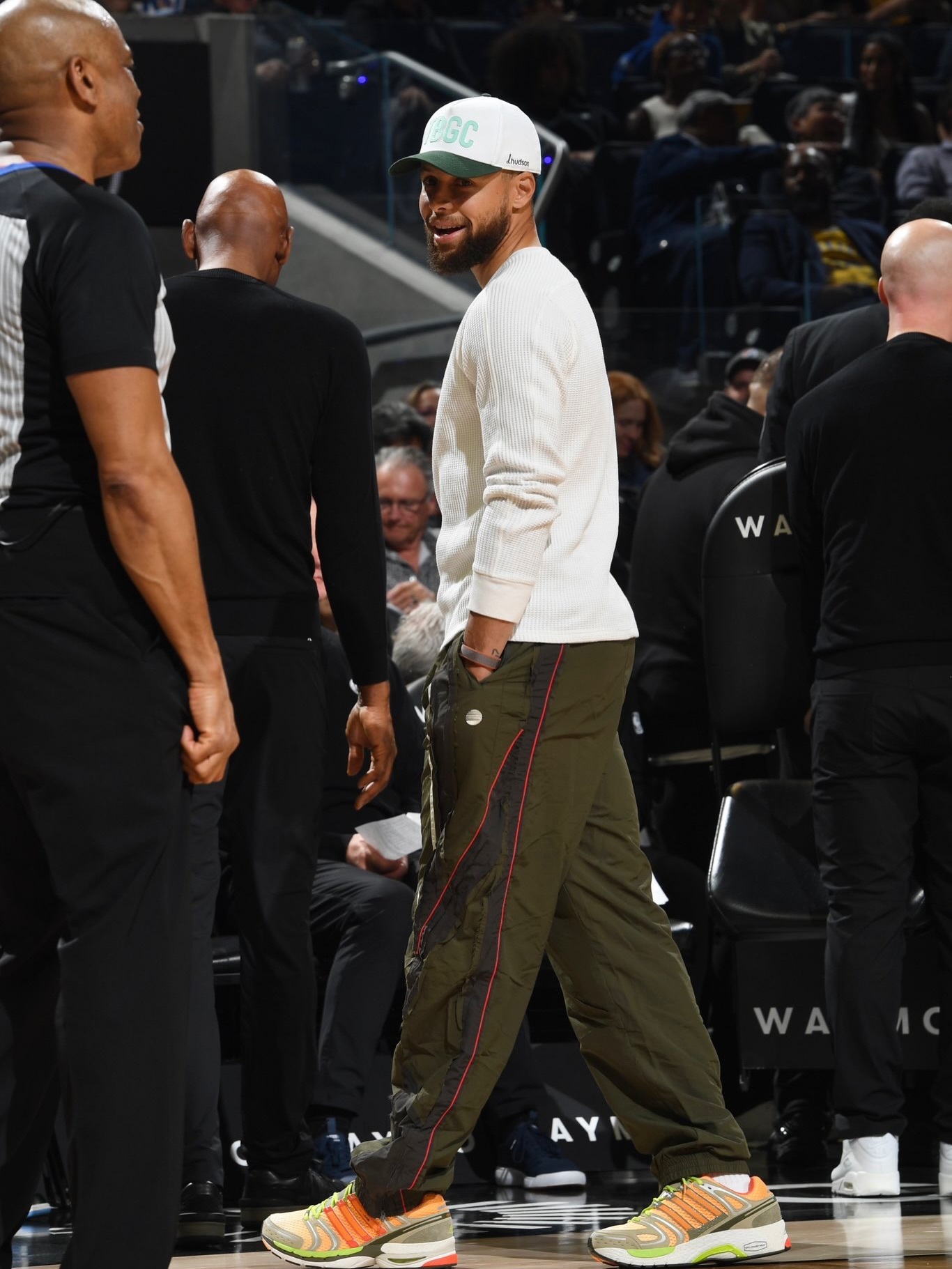 库里今天入场后换鞋了