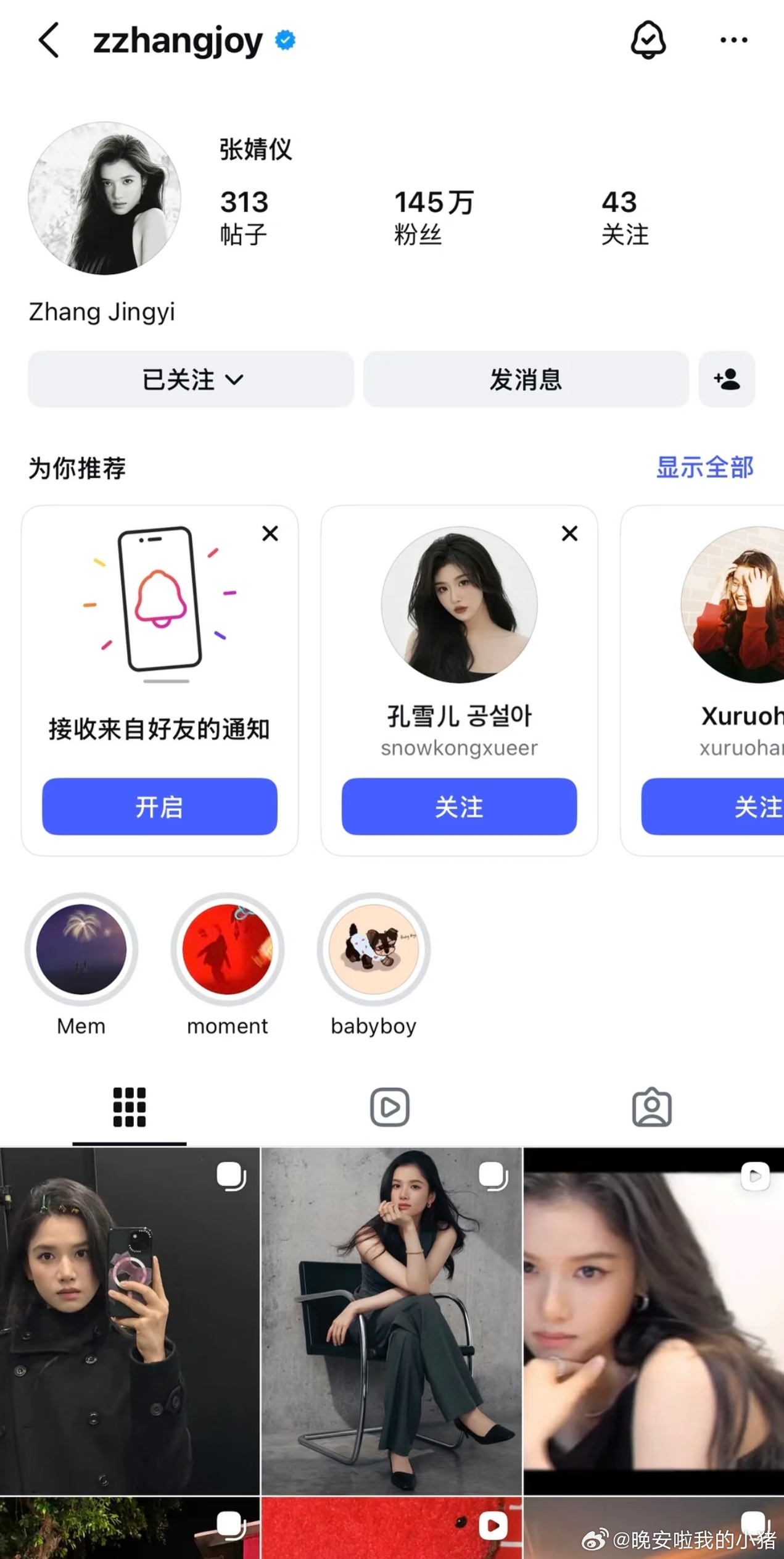 张婧仪陈都灵ins互关,两位美人友谊长存